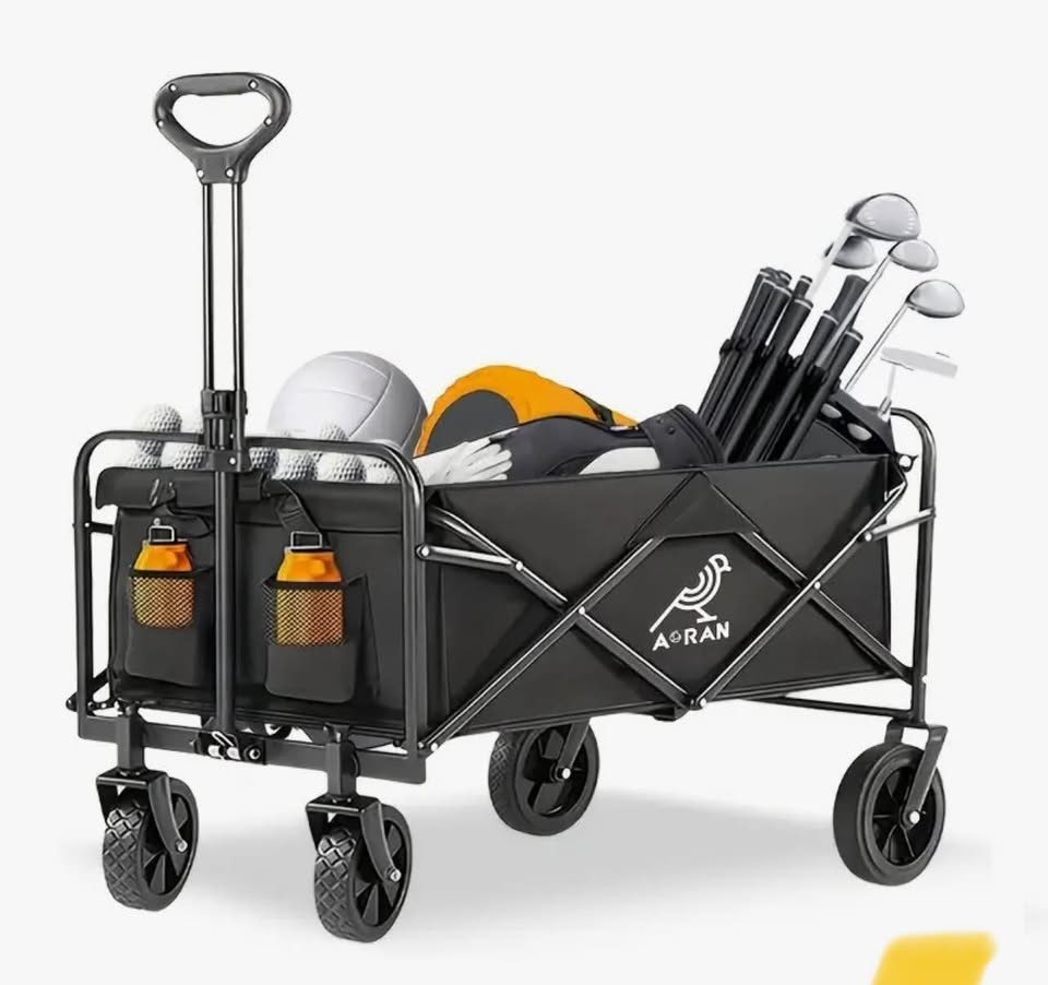 Heavy-Duty All-Terrain Track & Field Transport Cart with Adjustable Height, 360° All-Terrain Tires & Large Capacity - 4-Wheel Utility Vehicle for Equipment, Camping, Field - Compatible with Balls, Helmets, Gear or groceries. Pick up near Markham and Lawrence in Scarborough. If the ad is up it’s available.