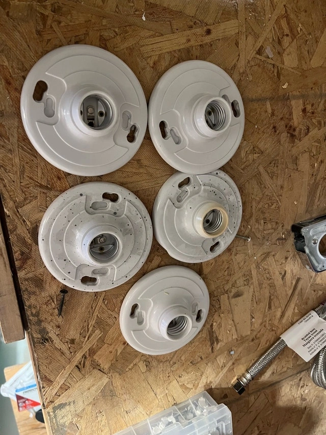 I am selling a set of used Keyless Lamp Holders in white. These are great for various lighting projects, offering a simple and reliable way to install light bulbs. They've been previously used but are still in good working condition, ready for your next electrical project.