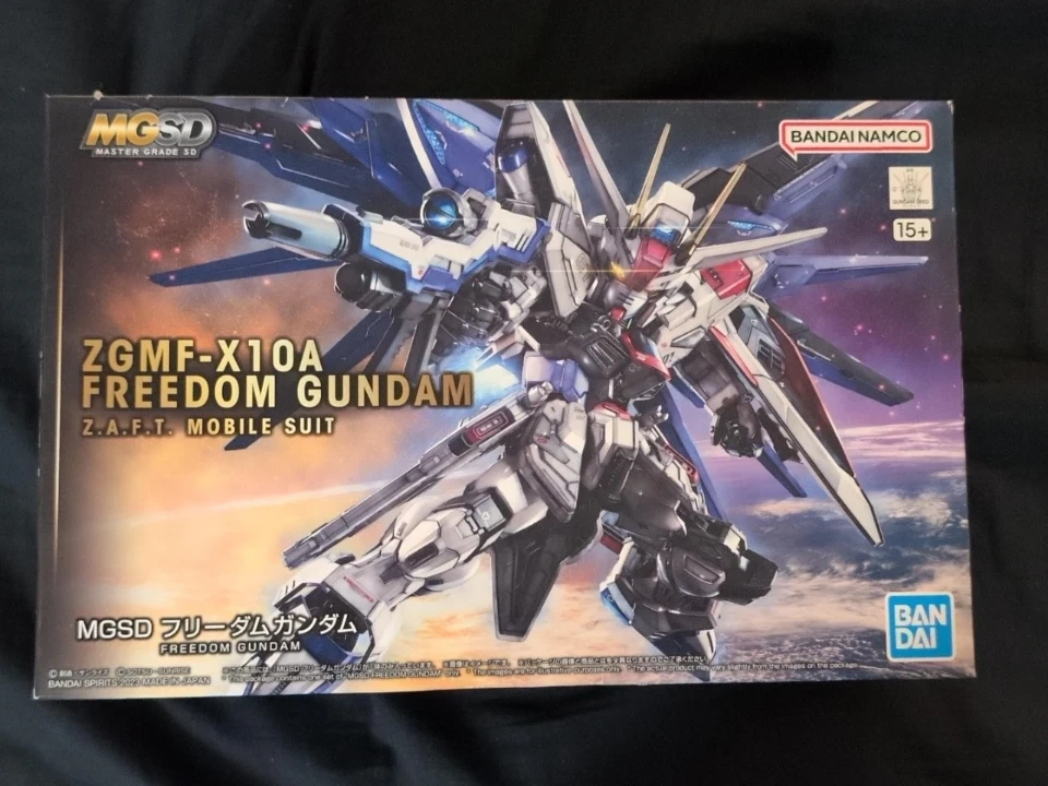 Sealed MGSD ZGMF-X10A Freedom Gundam model kit. It's a 15+ rated kit from Bandai. Includes original box and all components for assembly.