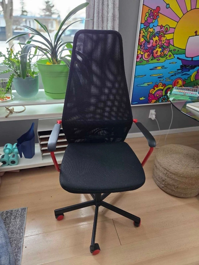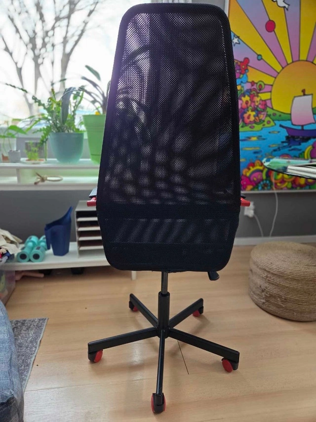 Selling my black IKEA Markus office chair. Lightly used and in good condition, ready to provide great support and comfort for your long workdays. Features include adjustable height, tilt function, and a high back for support. The durable mesh material ensures longevity. This chair has lots of life left. Asking $150. If you're reading this, the Markus is still available!