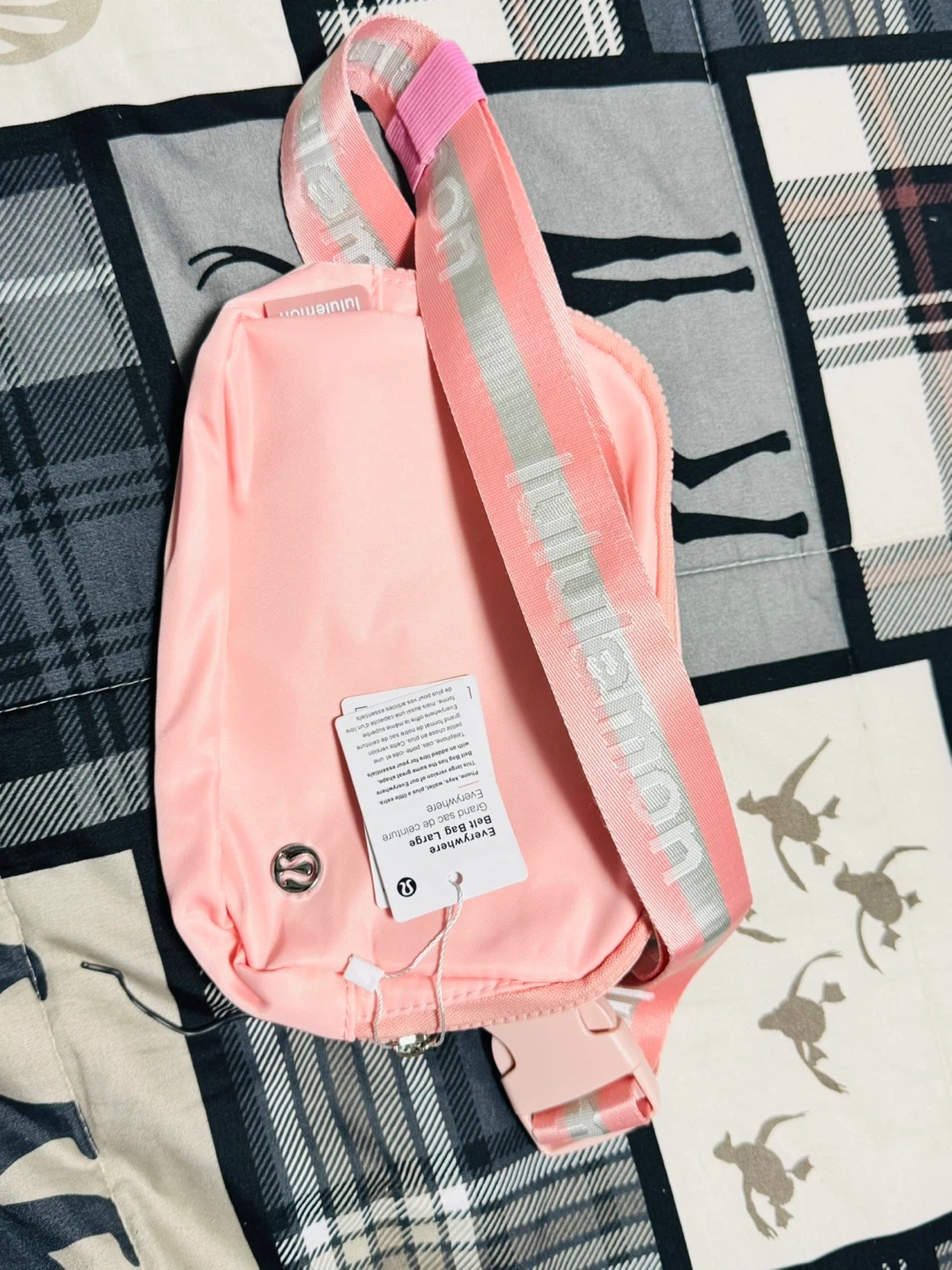 This is a Lululemon Everywhere Belt Bag in Large. It's a light pink colour. Includes adjustable strap. Never used with tag.