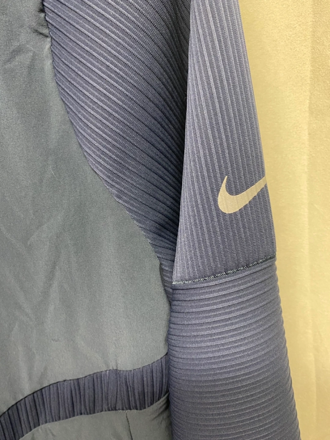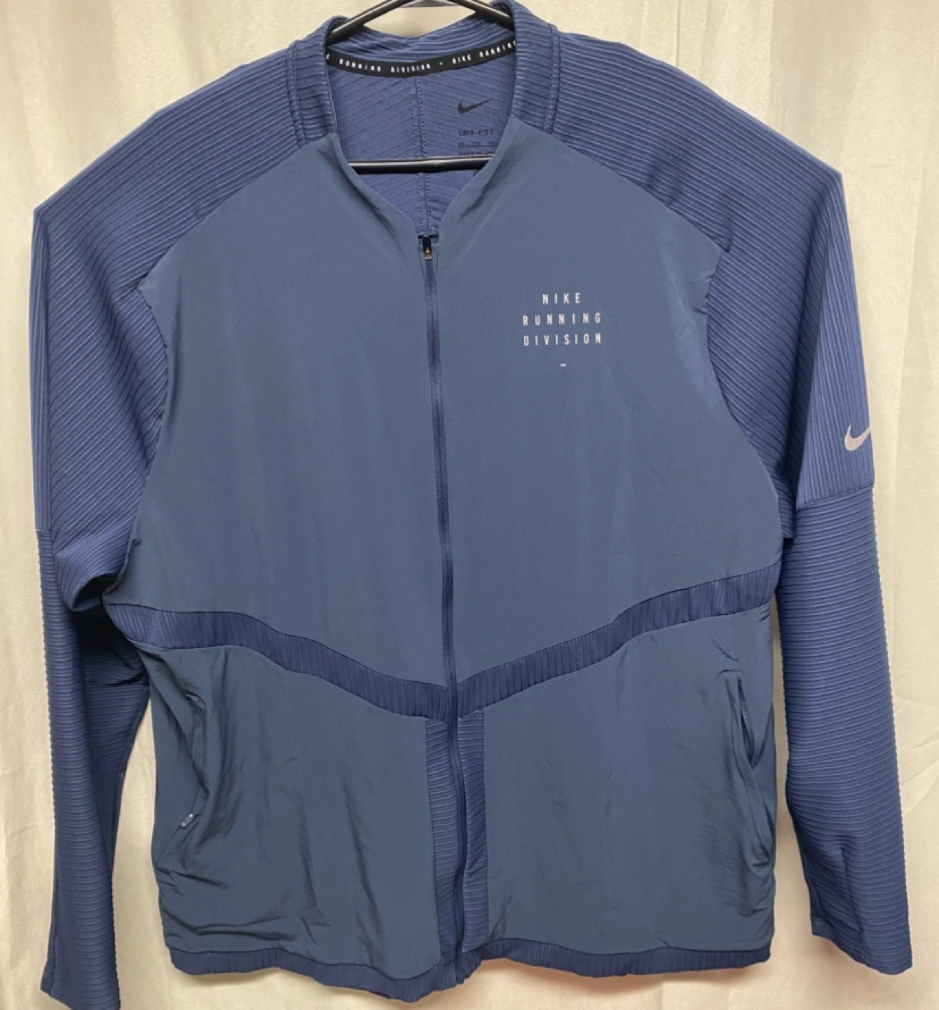 Men's Nike Running Division long-sleeve zip-up jacket. Features ribbed detailing and a stand-up collar. Great for layering or wearing on its own.