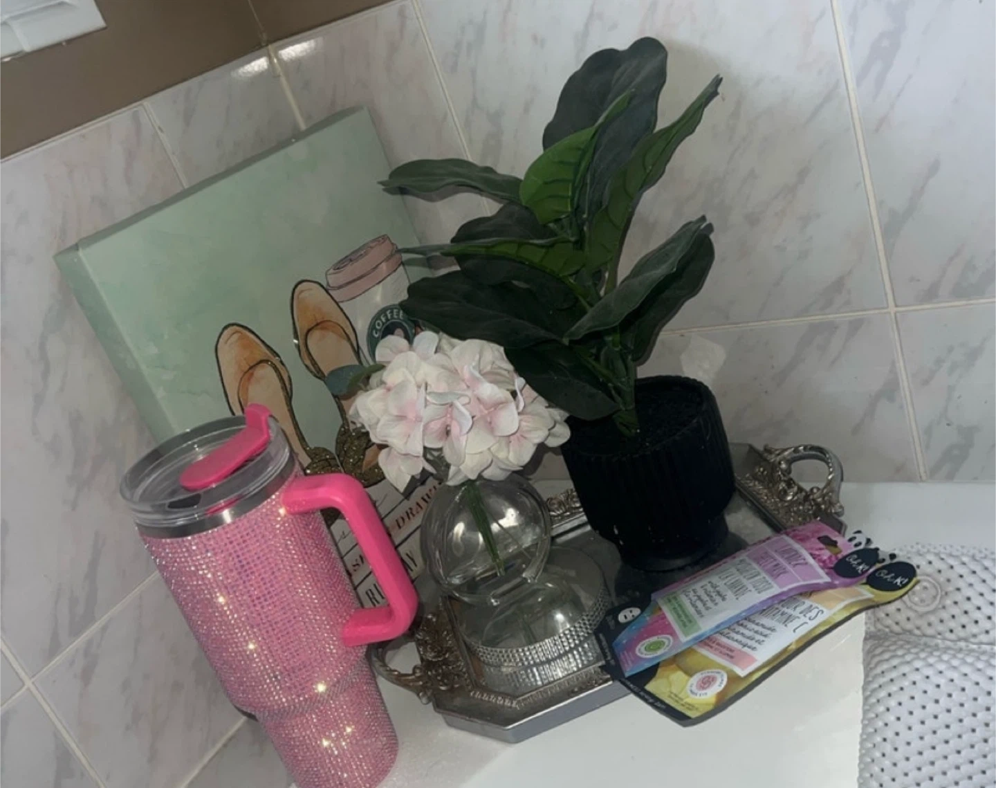 Pink Rhinestone Tumbler with Handle
