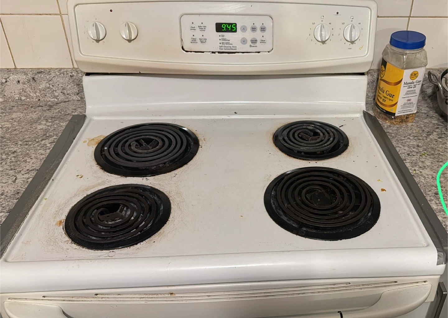 Selling a used white electric stove. It has four burners. Please see photos for condition, few burners are working, message me with date and time for pick up located in Malton morning star and reindeer dr