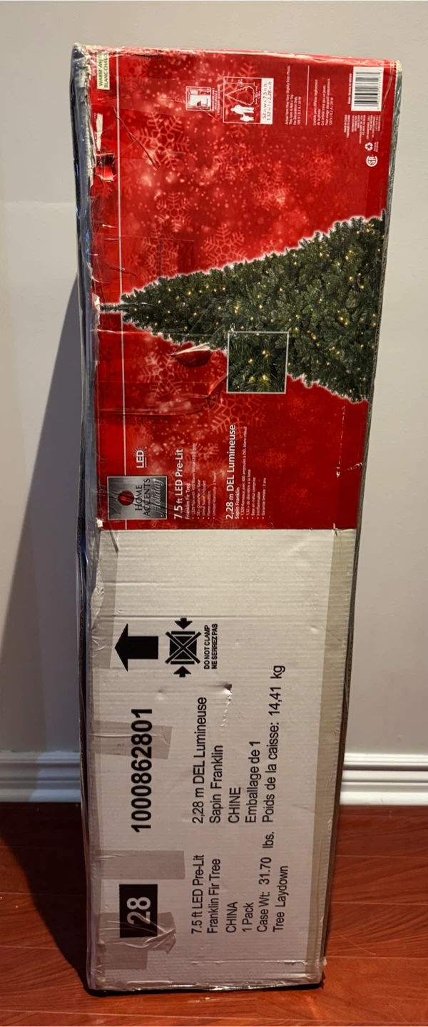Selling a 7.5 ft pre-lit Franklin Fir Christmas tree! It comes with 220 LED lights and is ready to bring holiday cheer to your home. The tree is in great condition and includes the original box, making storage easy after the holidays