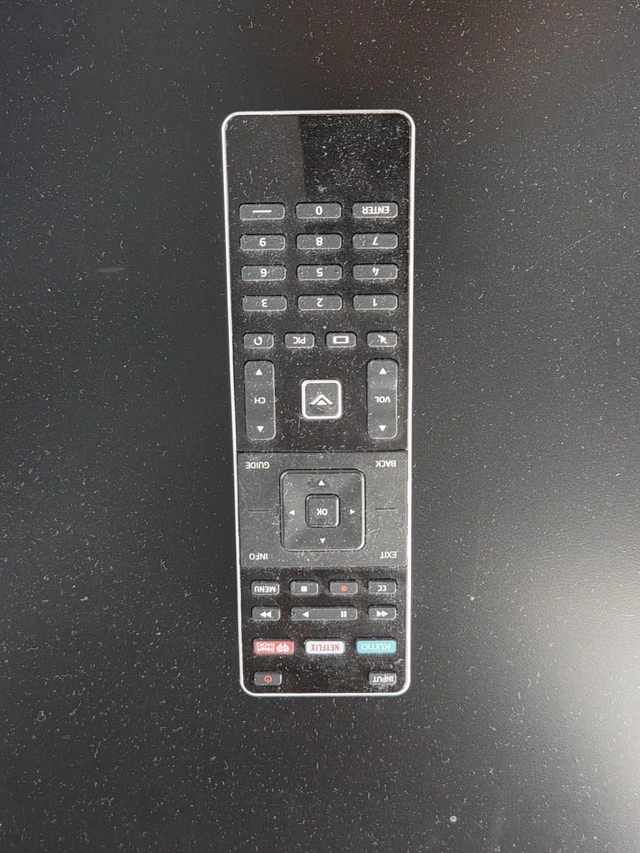 Vizio M70-C3 70-inch, full-array LED Smart TV with a 3840 x 2160 4K resolution and a 240Hz effective refresh rate. Comes with a remote. No legs, mounted on the wall. Just to mention: the TV generally works well — the sound and colors are great — but it occasionally turns off and restarts by itself. That’s why I’m selling it cheaply, and honestly I don’t really watch TV anyway.