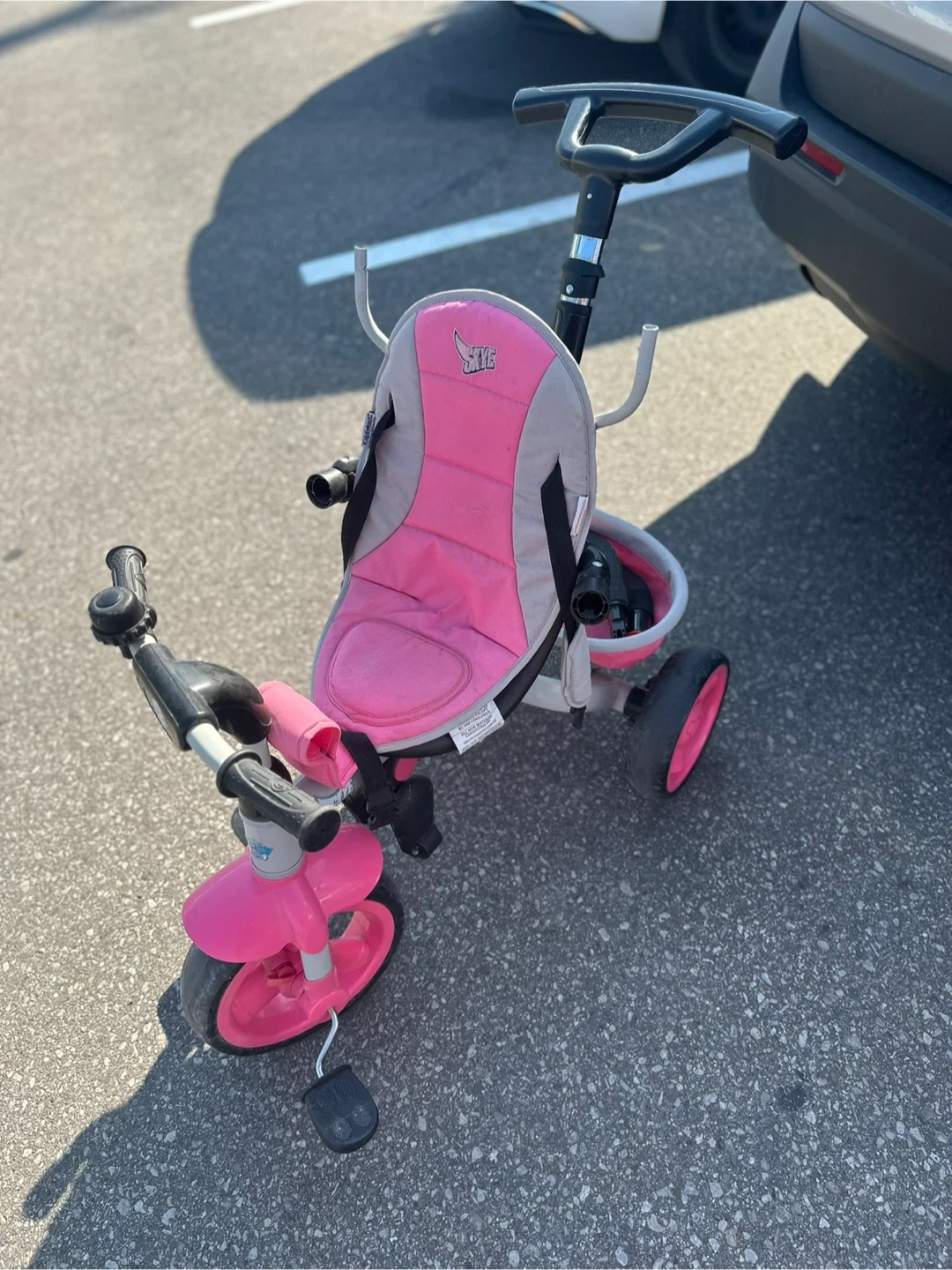 Selling a cute Paw Patrol toddler trike in pink! It's perfect for little ones learning to ride. The trike is in good condition and features a comfortable seat and a sunshade to keep your child protected. Great for outdoor fun and adventures!