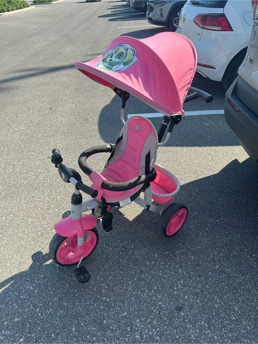 Selling a cute Paw Patrol toddler trike in pink! It's perfect for little ones learning to ride. The trike is in good condition and features a comfortable seat and a sunshade to keep your child protected. Great for outdoor fun and adventures!
