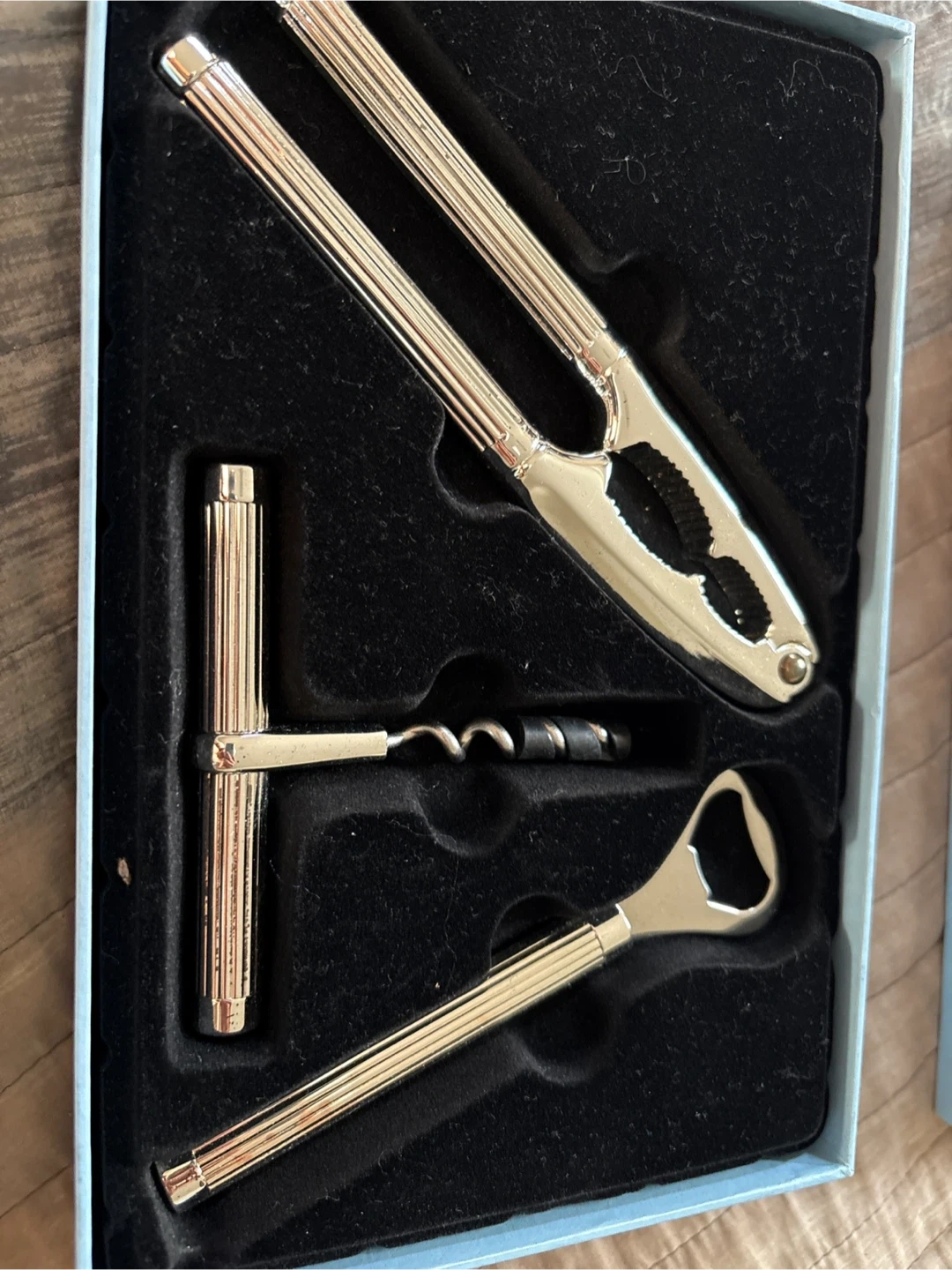 113NEW Wedgwood barware set includes a nutcracker, bottle opener, and corkscrew. Comes in its original box and is in great condition. Perfect for your home bar or as a gift! Pick up on Chandos Drive in Chicopee area N2A4H8