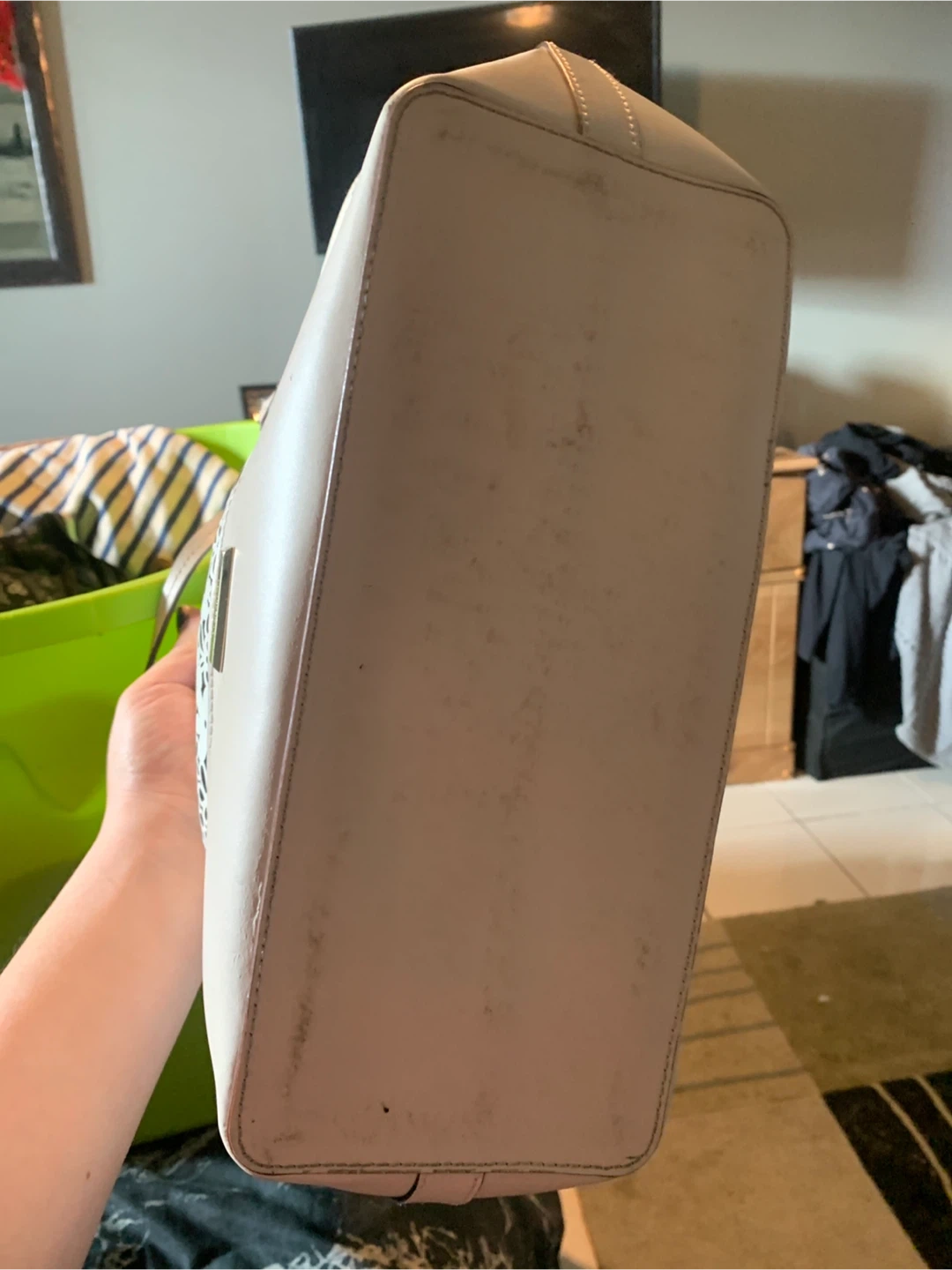 Selling a Kate Spade tote bag with a beautiful floral design. It's a stylish and practical bag for everyday use. It shows some signs of wear and could use a good cleaning, as seen in the photos. Still lots of life left in it!