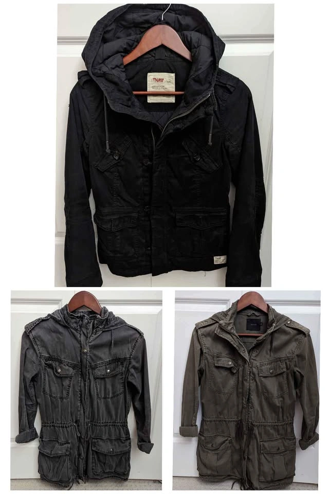 Good used condition. No pets / no smoking house. Aritzia trooper jackets - Olive Green & Gray both size XXS. Blue thick jacket size XS. All sold as lot. Pick up Richmond.