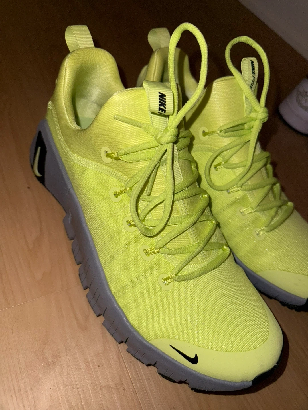 Selling a pair of Nike Free Metcon 4 training shoes in a vibrant lime green colour! These shoes are perfect for your workouts, offering flexibility and stability. They are in great condition and ready for a new home!