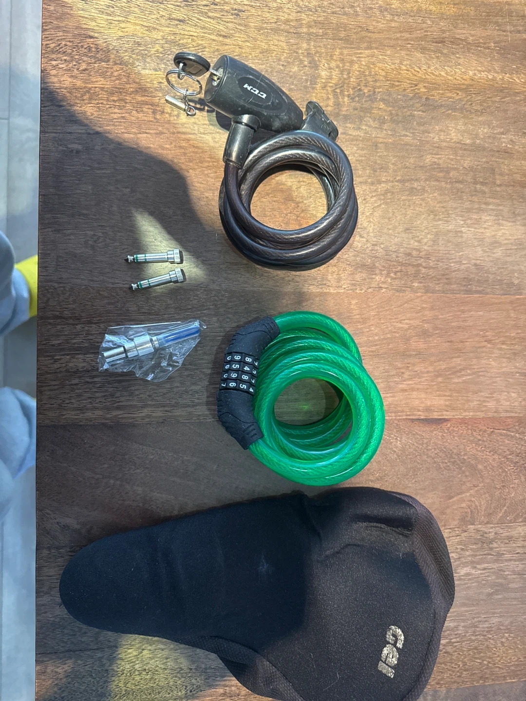 Buy & Sell2 Bike Lock & Seat Cover + extras2 Bike Lock & Seat Cover + extras$10Selling 1 bike locks and seat cover. The lock is a cable style with a key. Also included is a green combination lock. The seat cover is black.WHERE TO MEETFairview MallView MapSELLERverifiedJoseDon Valley Village45636 reviews1 chats·1 favorites·15 views