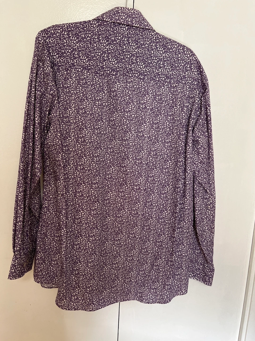 21Here's a nice long-sleeved shirt from Forsyth of Canada! It's a size L/G with a cool purple and white pattern. It's also non-iron, so it's super easy to care for