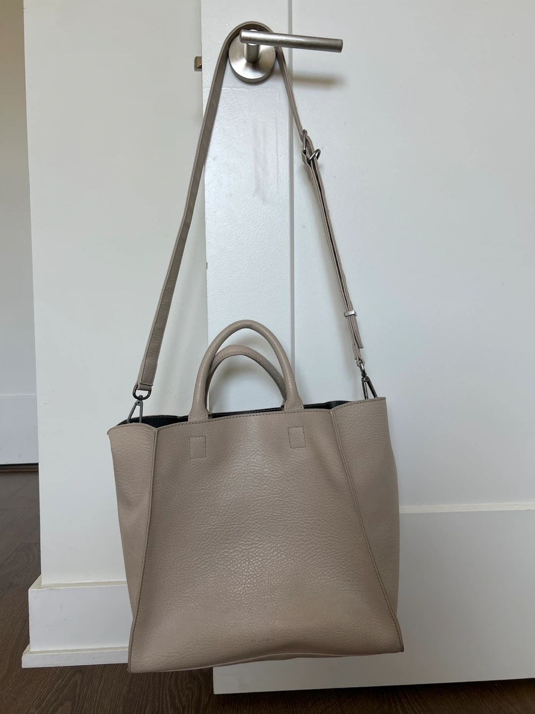 Selling a Matt & Nat tote bag in a lovely beige colour. It features a crossbody strap and top handles, making it versatile for different occasions. The lining is made of 100% recycled plastic bottles, so it's an eco-friendly choice too. Vegan leather. Cash only. Msg to schedule pick up:)