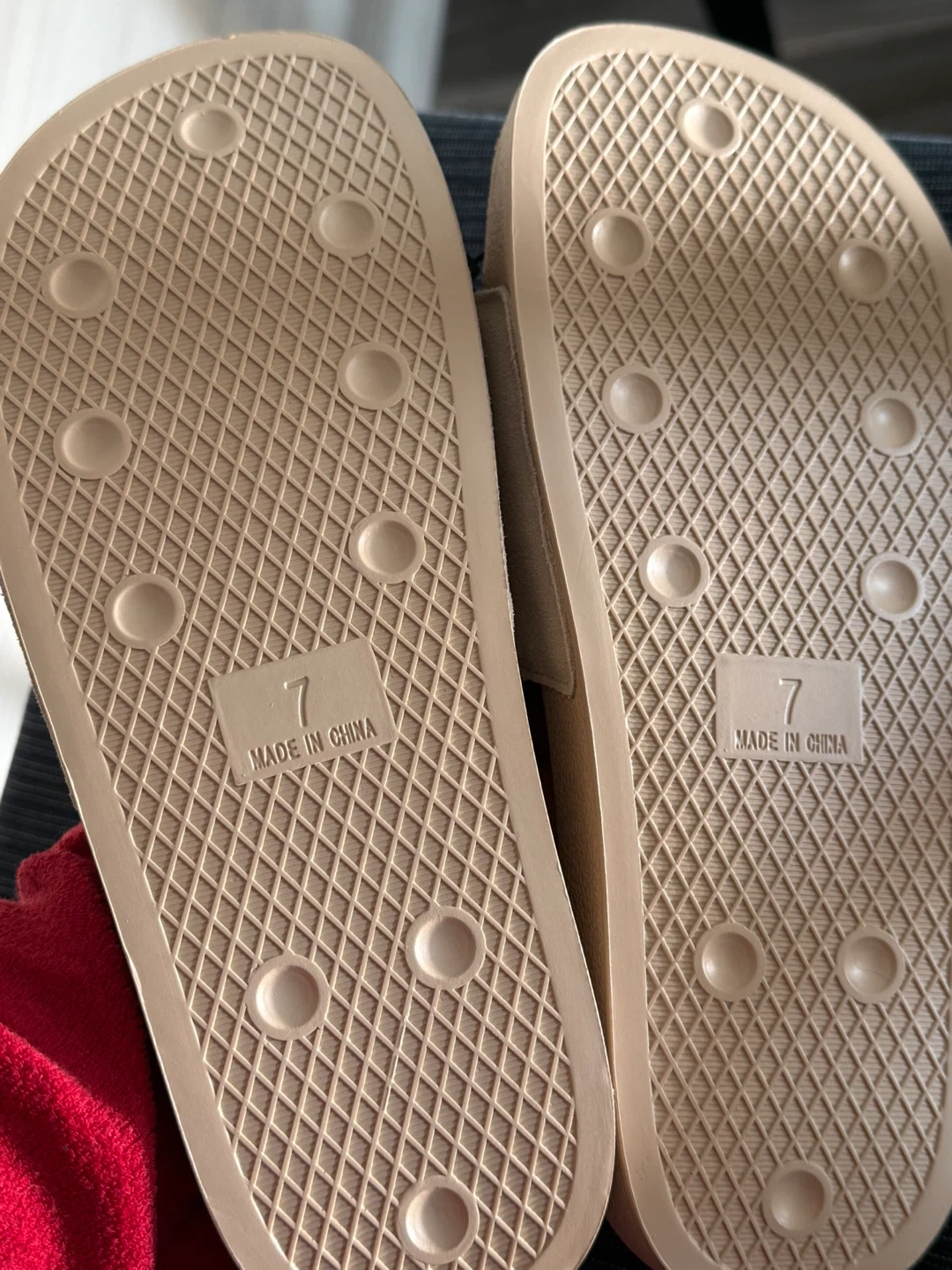 Selling a pair of Adidas Adilette Premium slides in a lovely neutral colour! They are a size 7 US. The upper is made of leather and textile material. These are brand new with tags still attached!