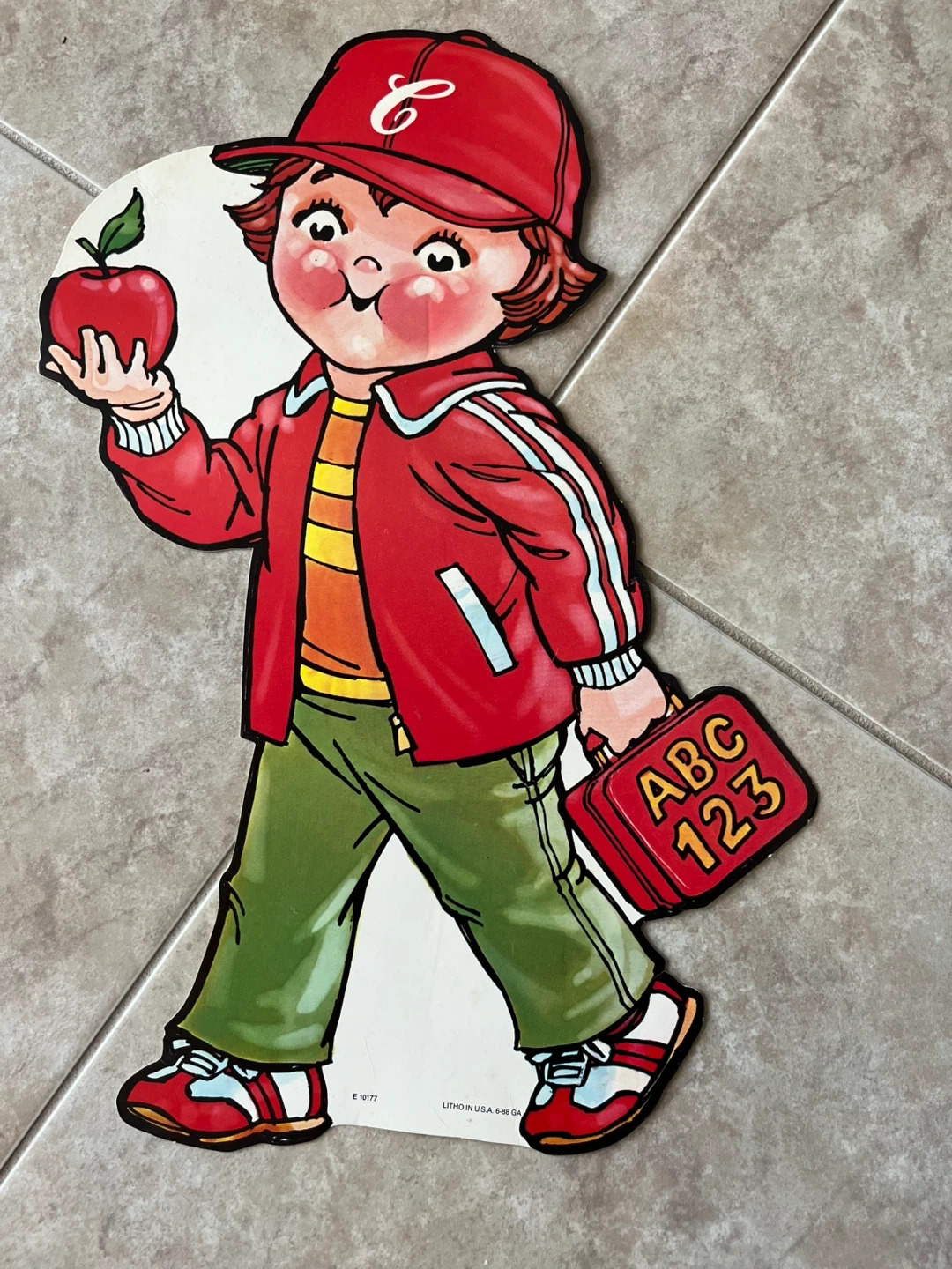 Selling a collection of vintage cardboard cutouts featuring various characters like a hockey player, golfer, chef, and more! These would be great for adding a retro touch to any room or collection- great for wall decor in a classroom or daycare- moving sale/ smoke free home