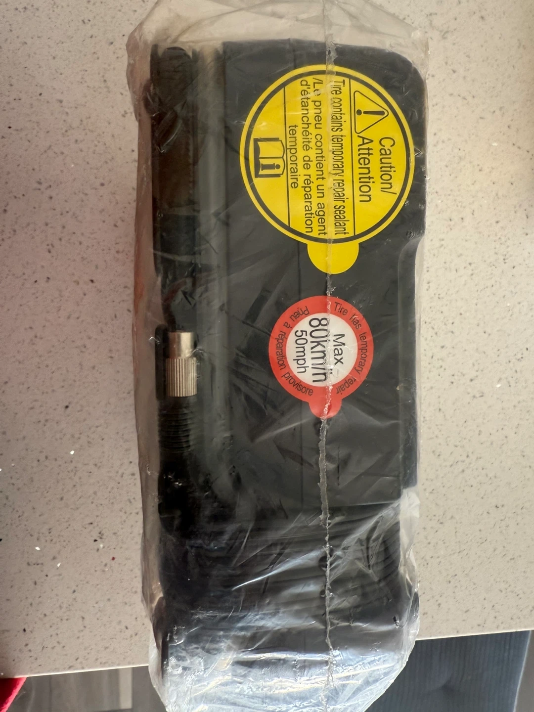 Selling a flat tire temporary repair kit still in its original packaging! The kit includes the owner's manual and all the components needed for a temporary tire repair.