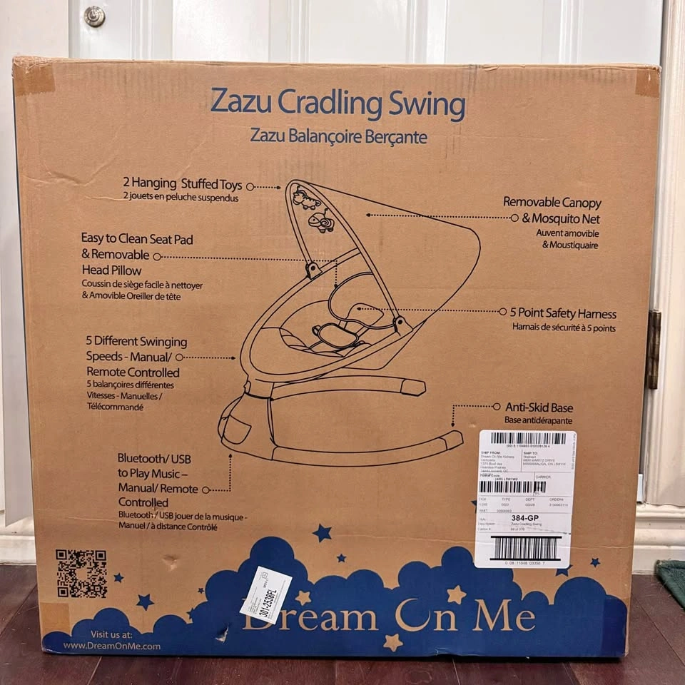 10Excellent condition! Gently used for 1.5 months only because my baby prefers the traditional hammock. Letting this go to a new home! Features: • 5 swing speeds with remote control • Bluetooth + USB music options • 5-point safety harness • Removable pillow, canopy & mosquito net • Includes 2 soft plush toys • Compact, modern design with anti-skid base • Easy to clean seat pad • Timer in settings (8 / 15 / 30 mins) Multi-award winner (NAPPA, JPMA, and more!) Perfect for babies from newborn to 6 months. Dimensions: 25”L × 21.5”W × 19.5”H. Weight: 7.3 lbs