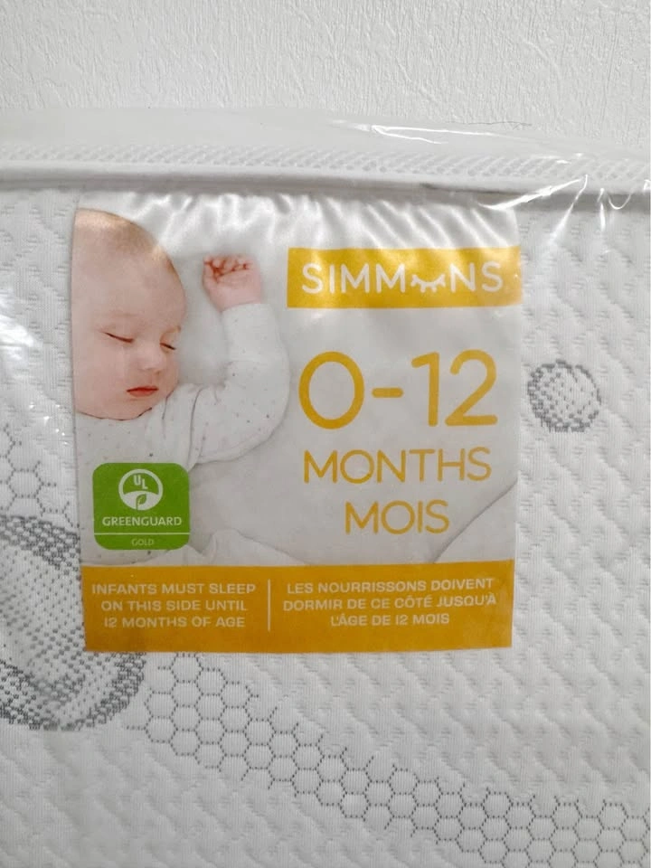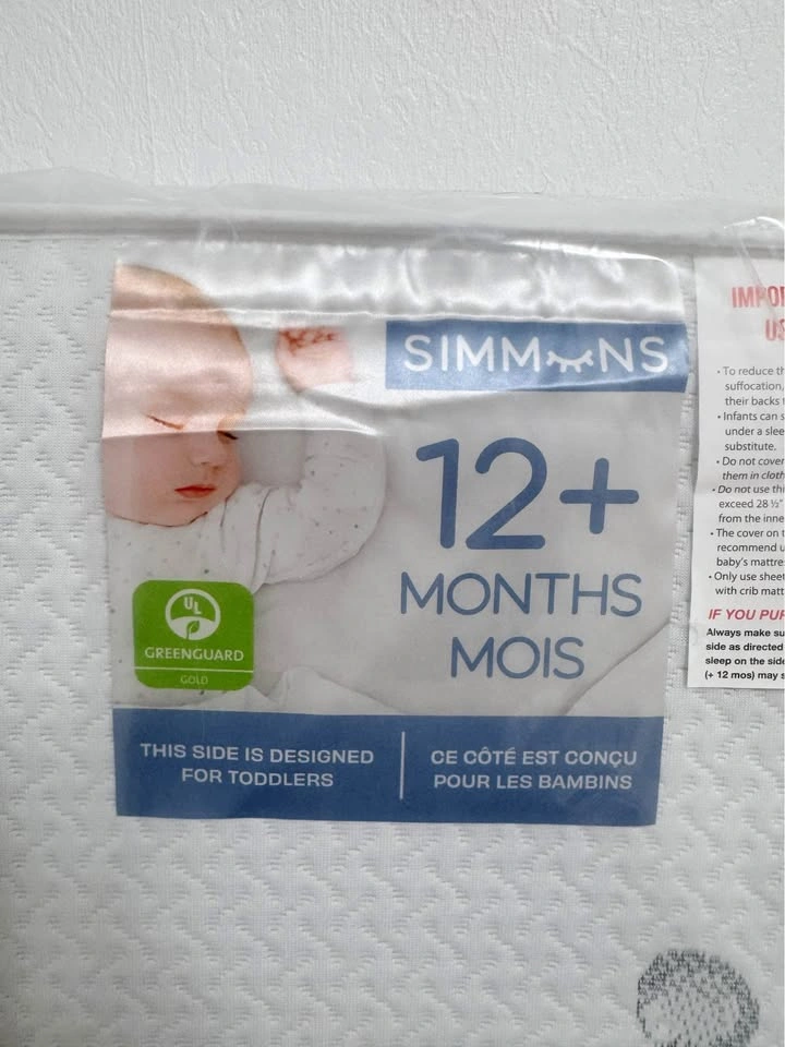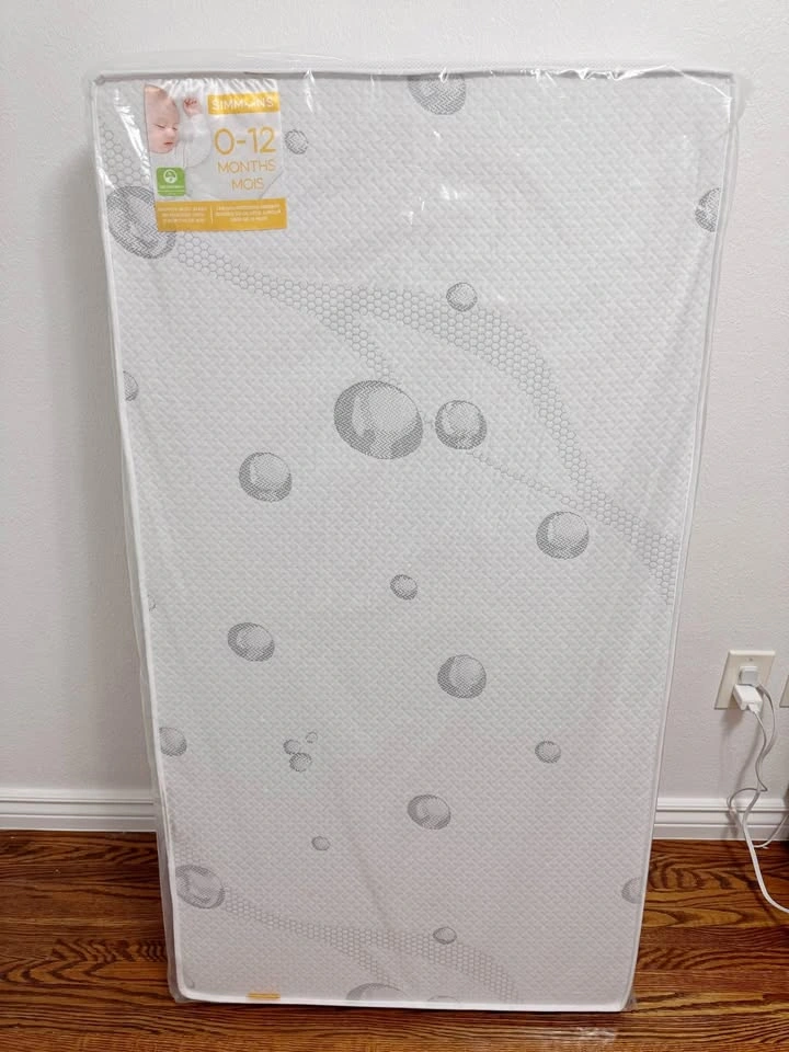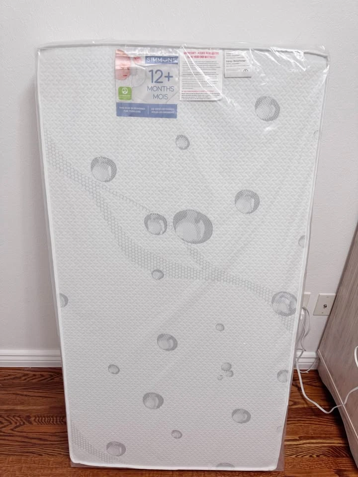 10Brand new, never used. It came as part of a baby crib set package, but we already purchased a different mattress, so we’re selling this one. Still in original packaging. ✅ Two-sided design: Extra-firm side for infants (0–12 months) and softer, padded side for toddlers (12+ months) ✅ Breathable & non-toxic: No foam, no vinyl, no phthalates, no off-gassing; 99.9% VOC-free ✅ Comfort & safety: Fewer pressure points than traditional spring-filled mattresses ✅ Durable cover: Polyester fabric is breathable, water- and stain-resistant, soft to the touch ✅ Lightweight: Easy to lift and change sheets Dimensions: • Height: 52 inches • Width: 27.5 inches • Thickness: 5.5 inches • Weight: 27.5 lbs