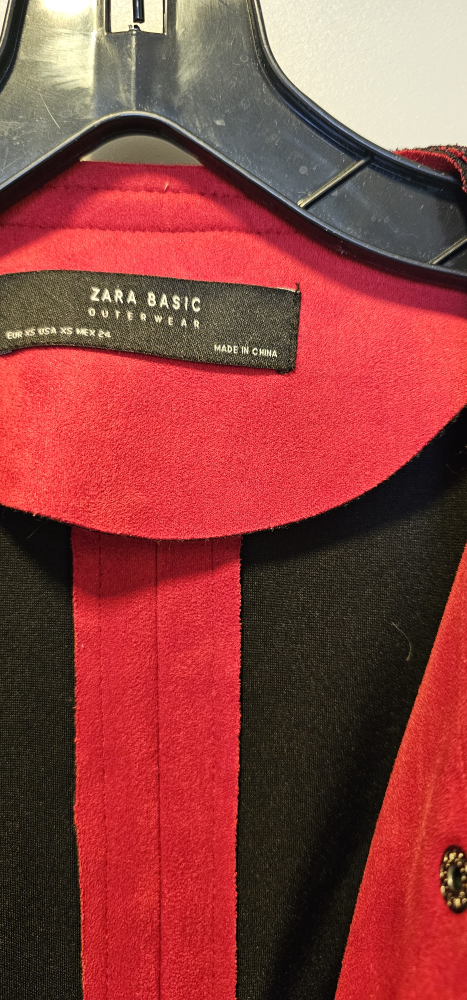 Selling a Zara Basic outerwear jacket in red, size XS. It's in great condition and ready for a new home! The material feels like a soft suede.