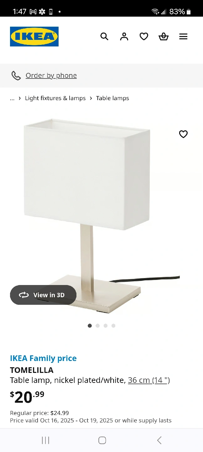 IKEA Tomelilla Table Lamp - Nickel Plated/White, $12 for both