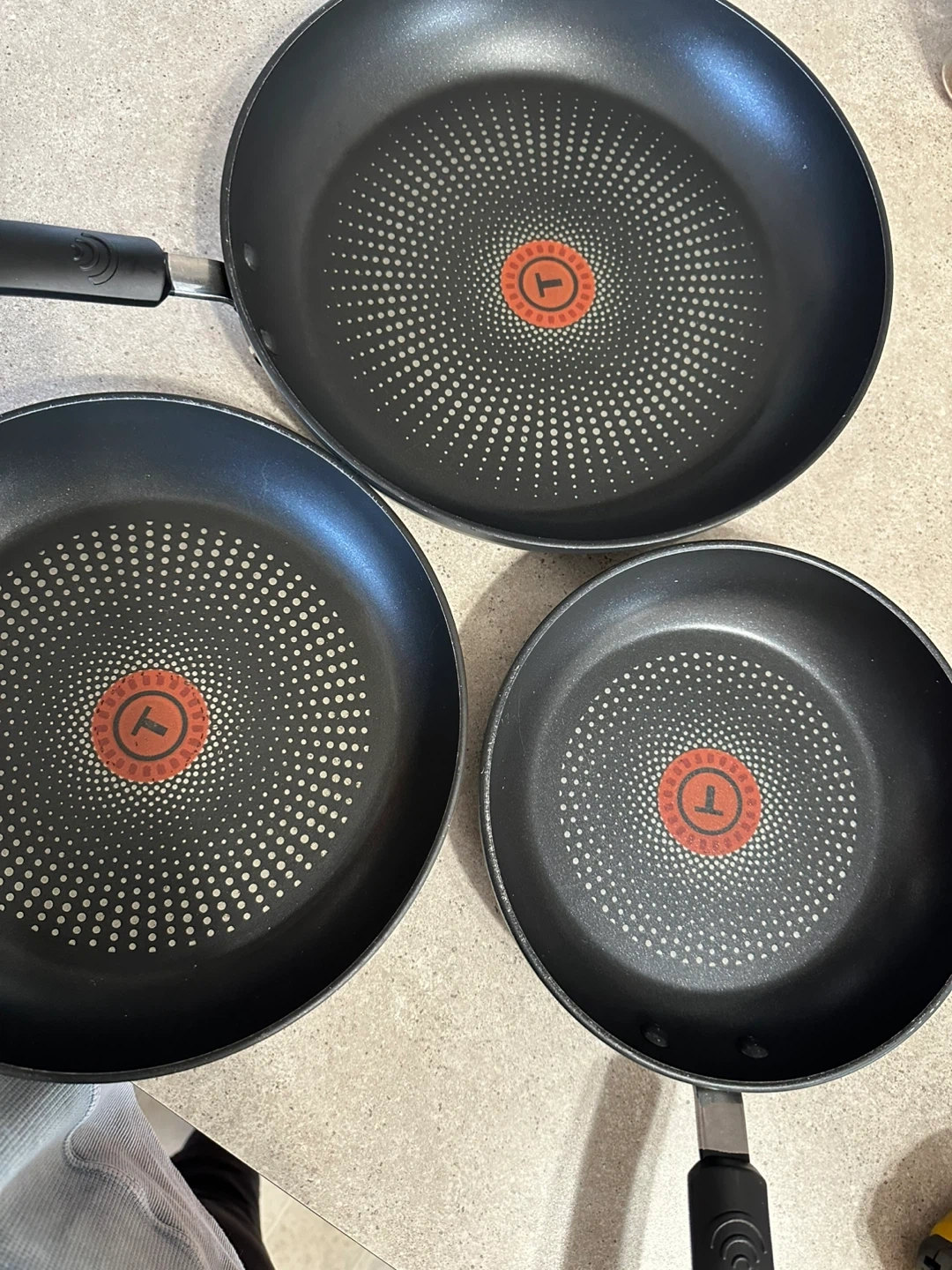 Selling a set of three T-fal non-stick fry pans! These pans are in great shape and ready for your next culinary adventure. They feature the classic T-fal red spot indicator to let you know when the pan is perfectly preheated. A great addition to any kitchen!
