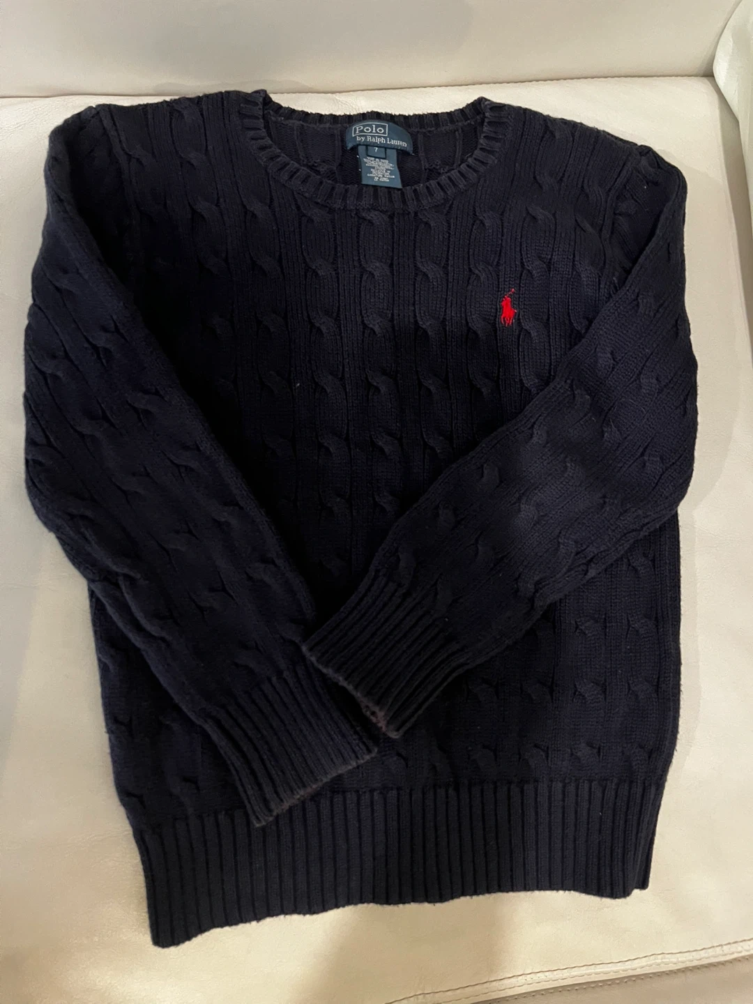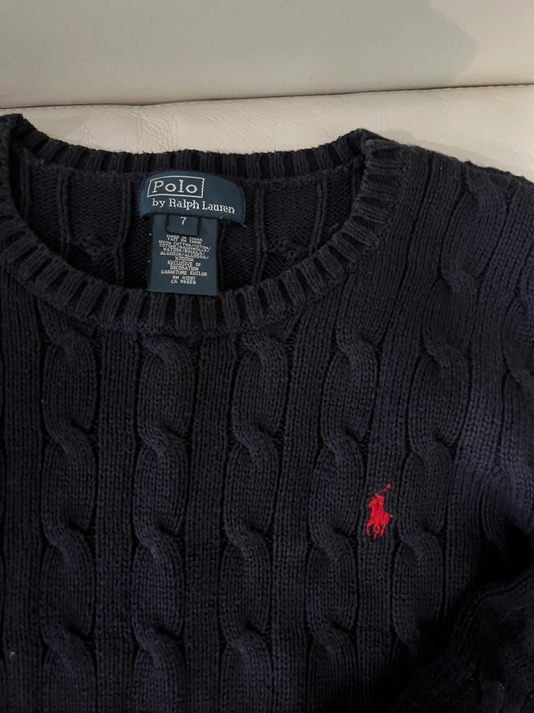10A classic navy blue cable knit sweater from Polo by Ralph Lauren kids. It's in excellent condition. The size is 7.