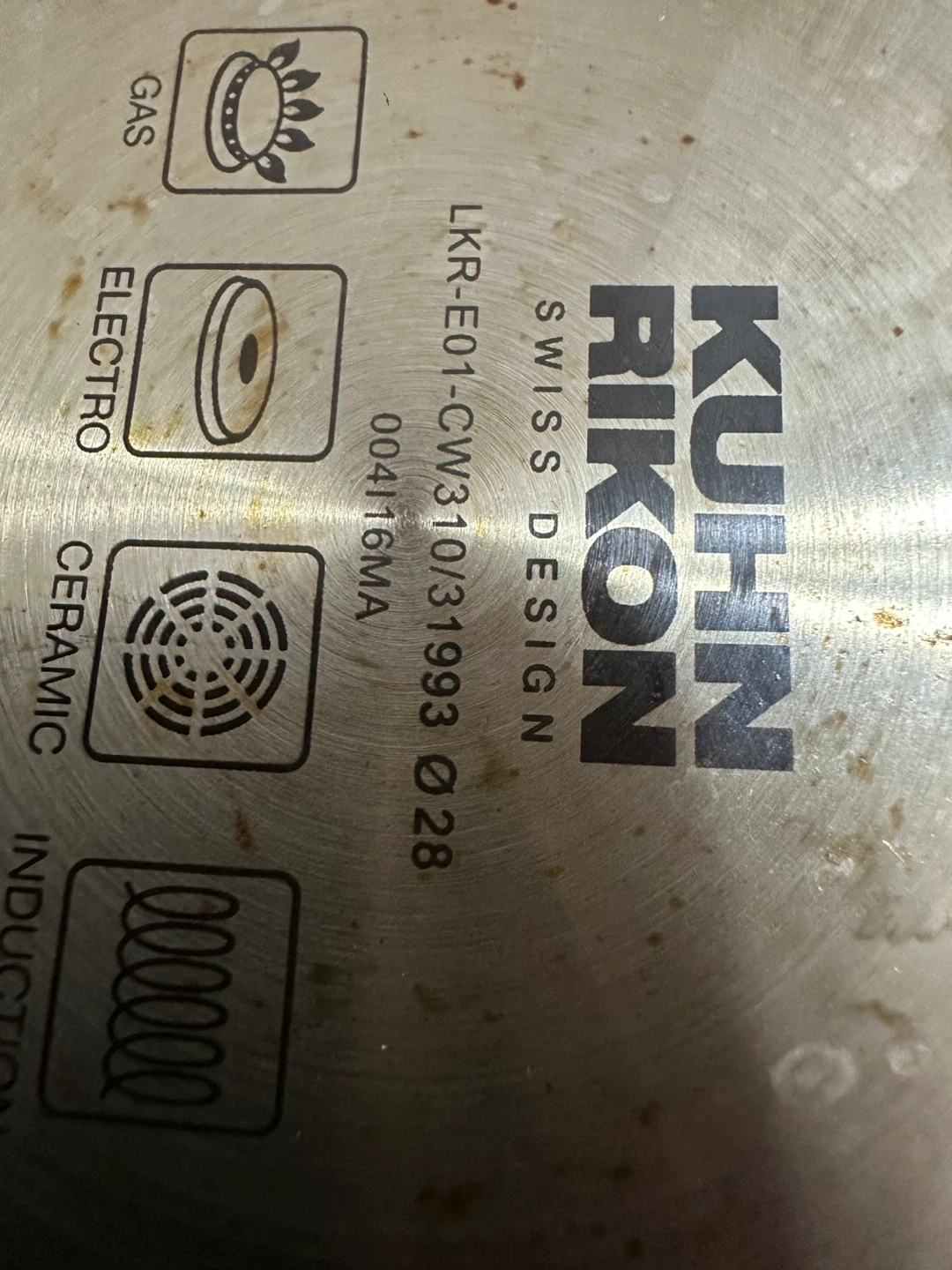 Selling a Kuhn Rikon Swiss Design fry pan. It's 28cm in diameter and suitable for gas, electric, ceramic, and induction cooktops. Great for all your frying needs!
