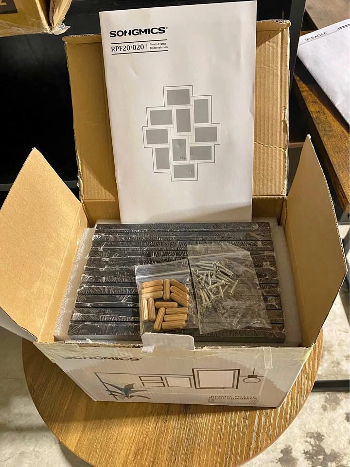Brand New SONGMICS Black Collage Photo Frame — holds 10 photos (4x6 in.). Retails for $133 plus taxes, selling for $50 Brand new in box, all parts complete, never used.