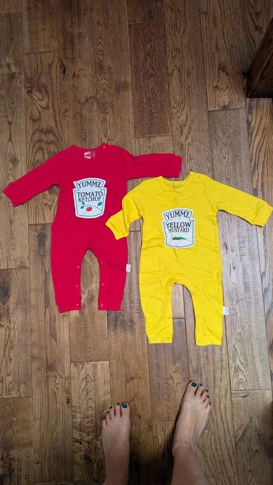 YSCULBUTOL Twins Bodysuit Ketchup Mustard 7-9 months
