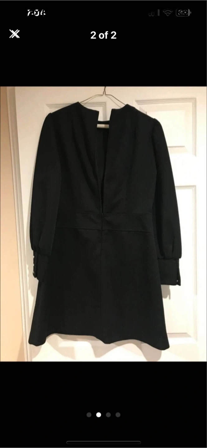 178A cute black dress that's perfect for any occasion! It features long sleeves and a unique design on the waist. It's in great condition and ready for a new home