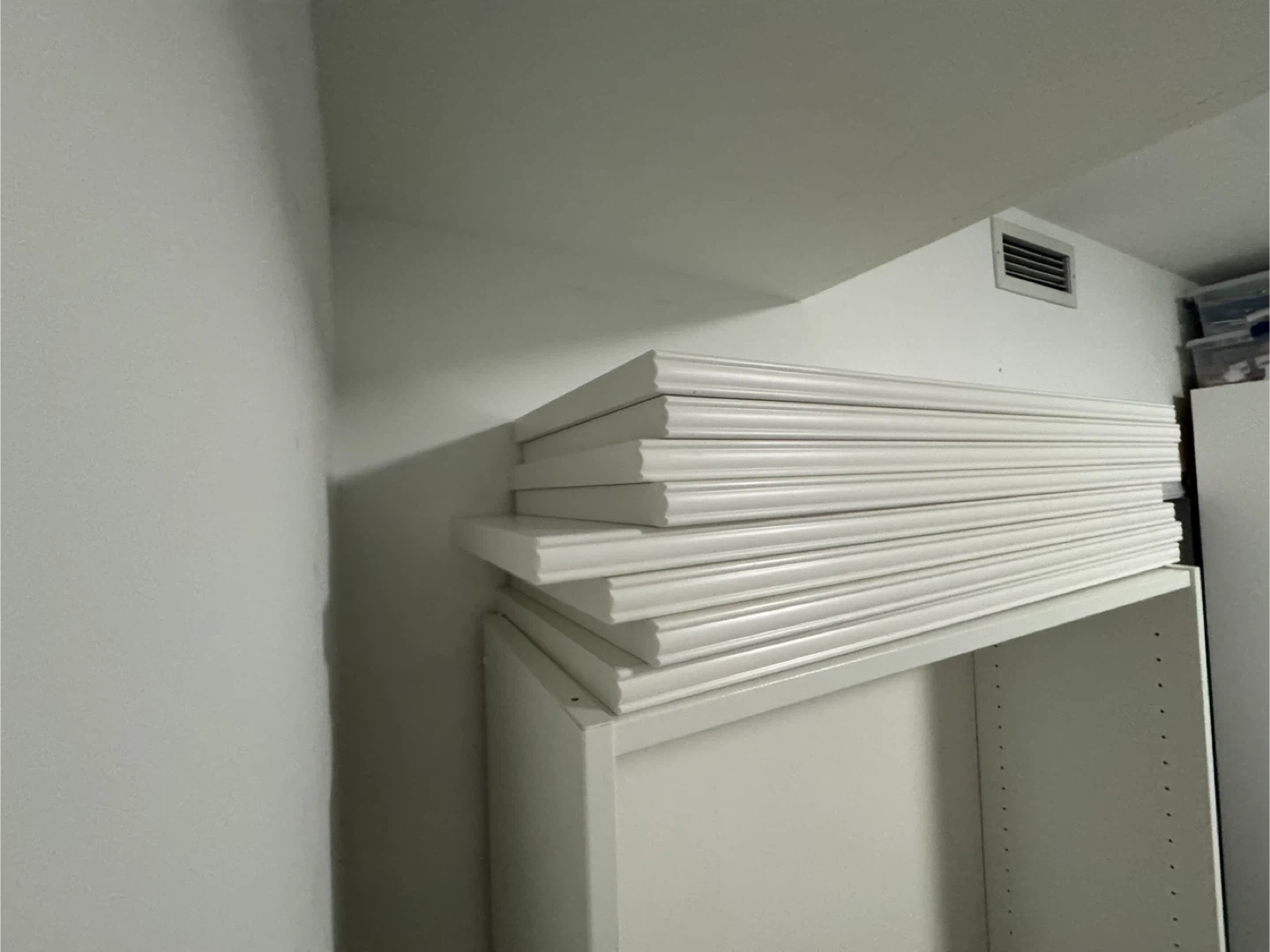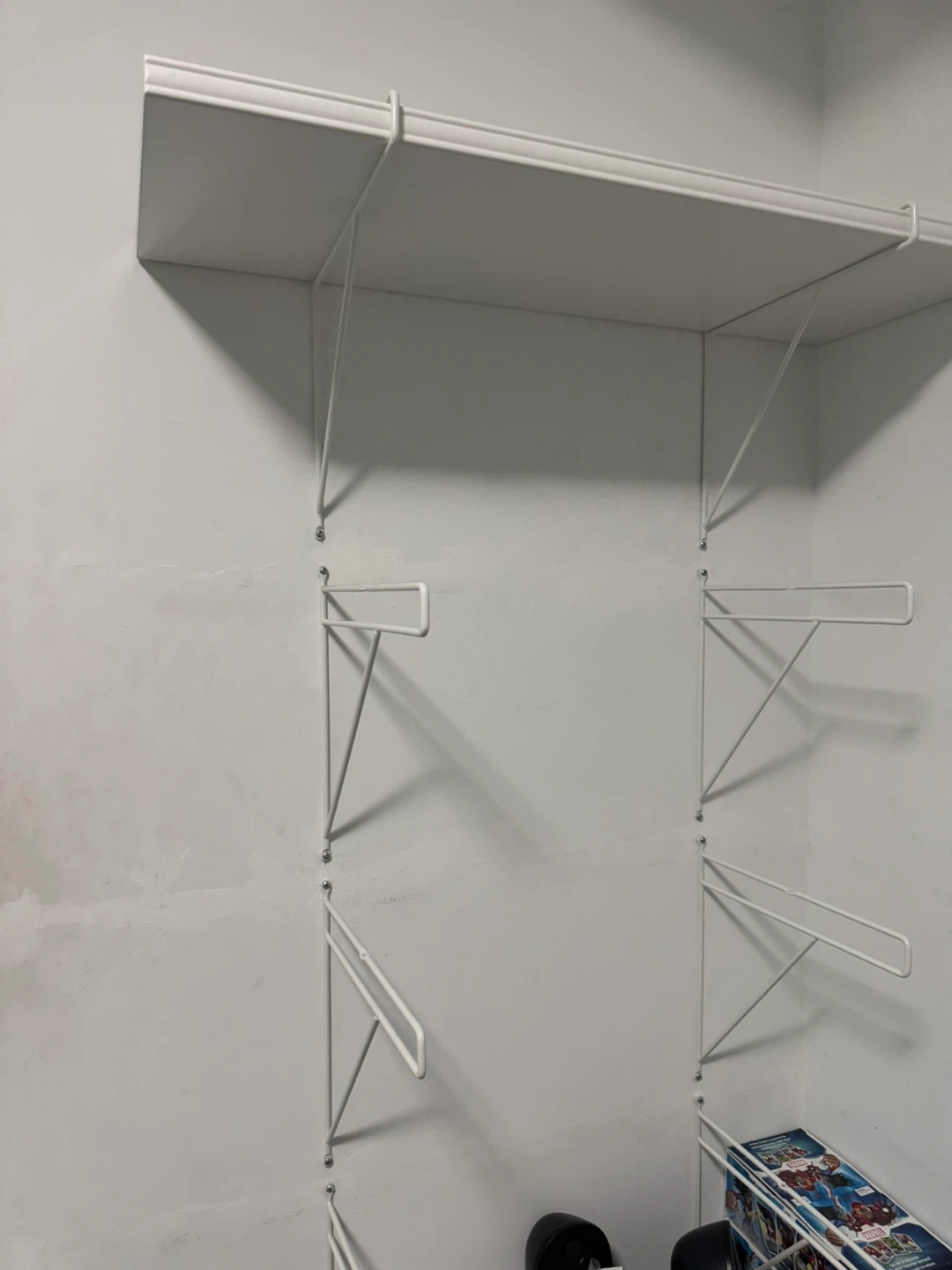 8 ikea white BERGSHULT shelves and 16 white PERSHULT brackets. Selling because we replaced it with bookcases instead