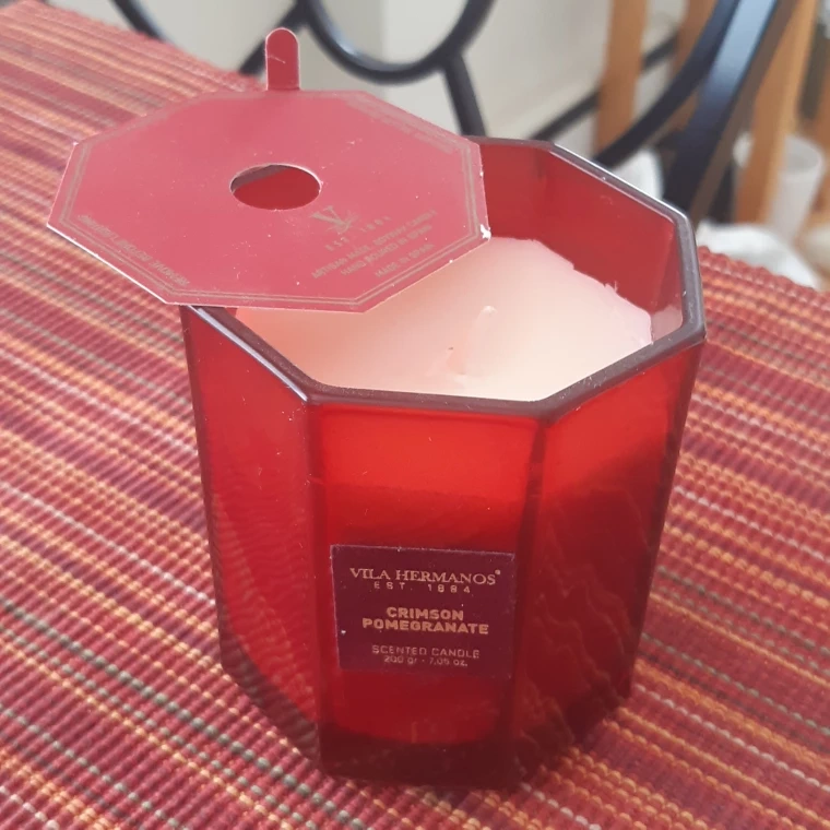 Great for Halloween with the red fiery glow. Selling new Vila Hermanos Crimson Pomegranate scented candle. It's a soy wax candle, hand-poured in Spain. The candle is 200 gr / 7.05 oz.