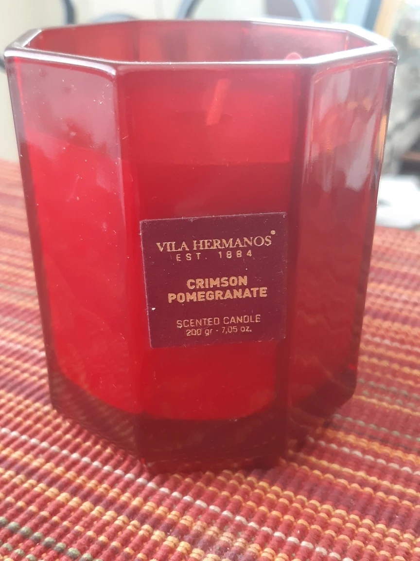 Great for Halloween with the red fiery glow. Selling new Vila Hermanos Crimson Pomegranate scented candle. It's a soy wax candle, hand-poured in Spain. The candle is 200 gr / 7.05 oz.