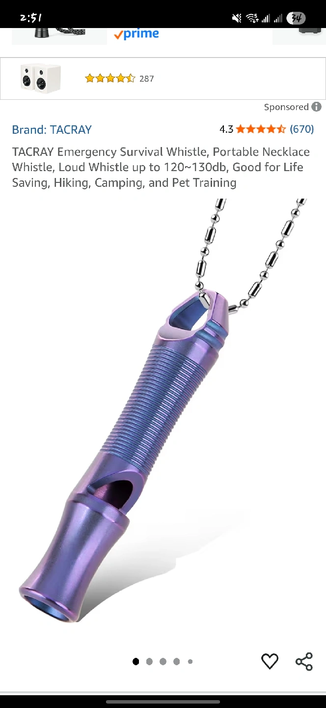 This is a TACRAY Emergency Survival Whistle in a cool purple blue colour! It's a portable necklace whistle that's super loud at 120~130db. Great for life saving, hiking, camping, and even pet training!