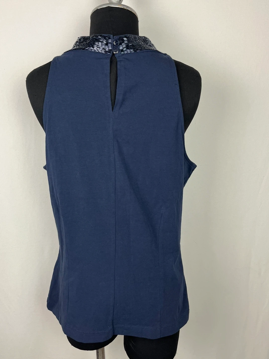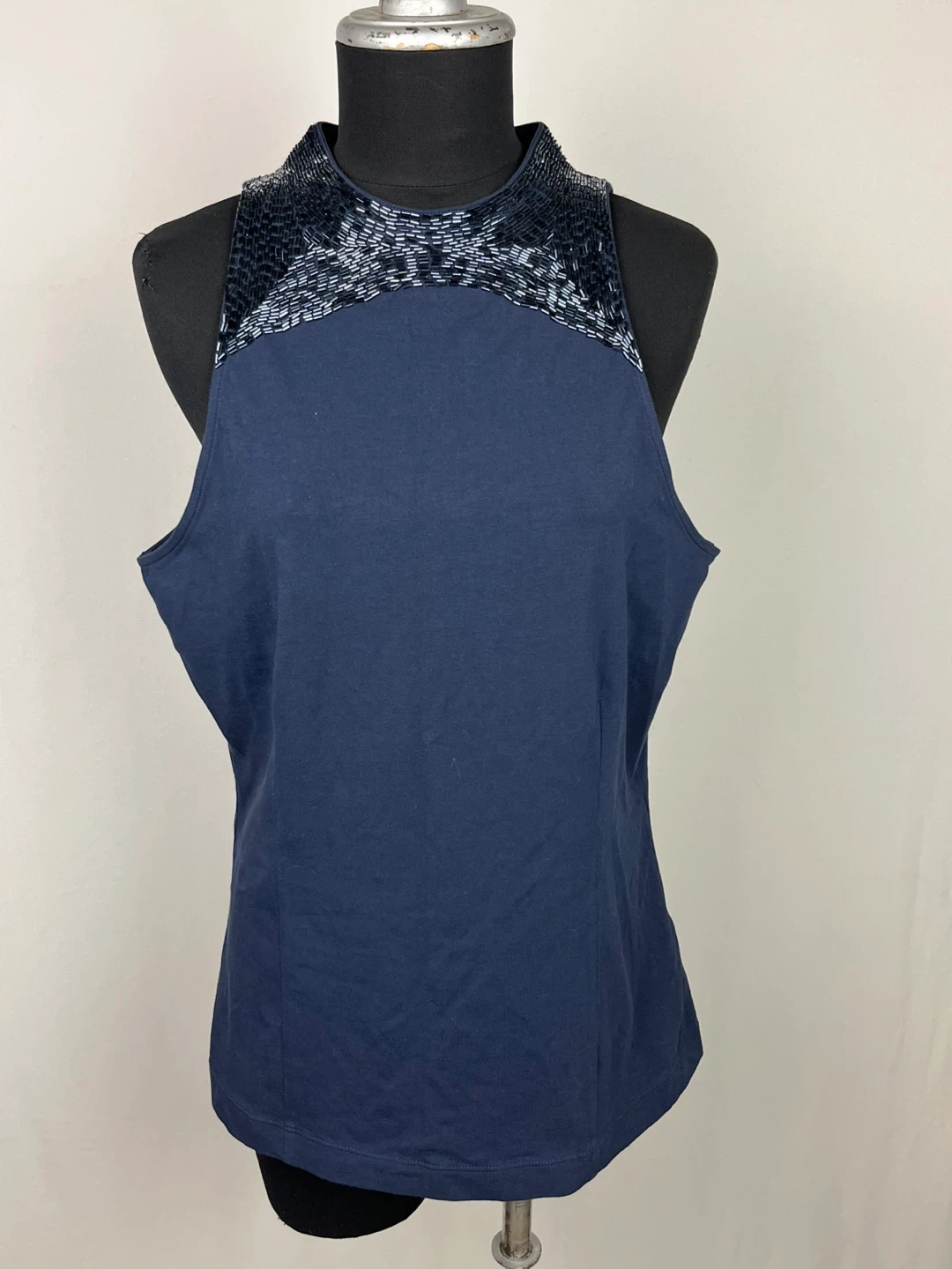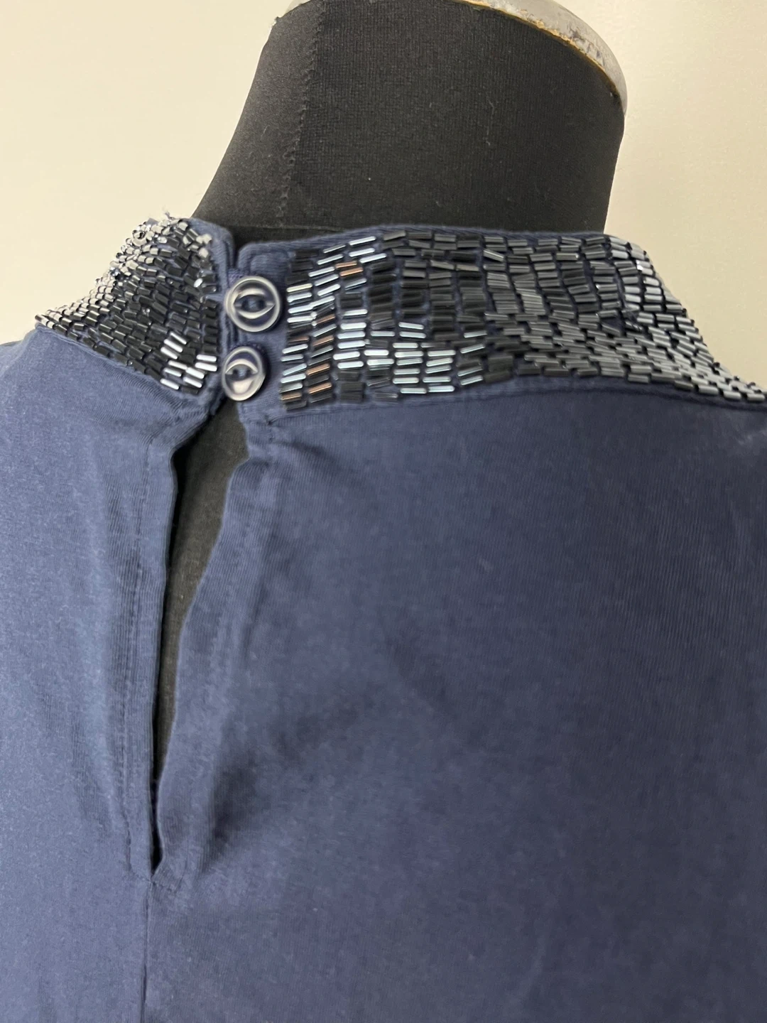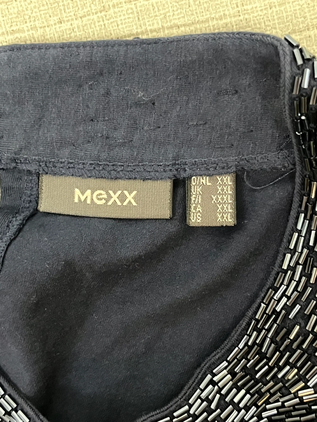 31Here's a stylish navy blue Mexx top. It features a beaded neckline that adds a touch of elegance. Perfect for dressing up or down! Tag says XXL but fits more like a L. Pick up at Brow of the Hill near 10th and Royal, New Westminster. Check out my other listings!