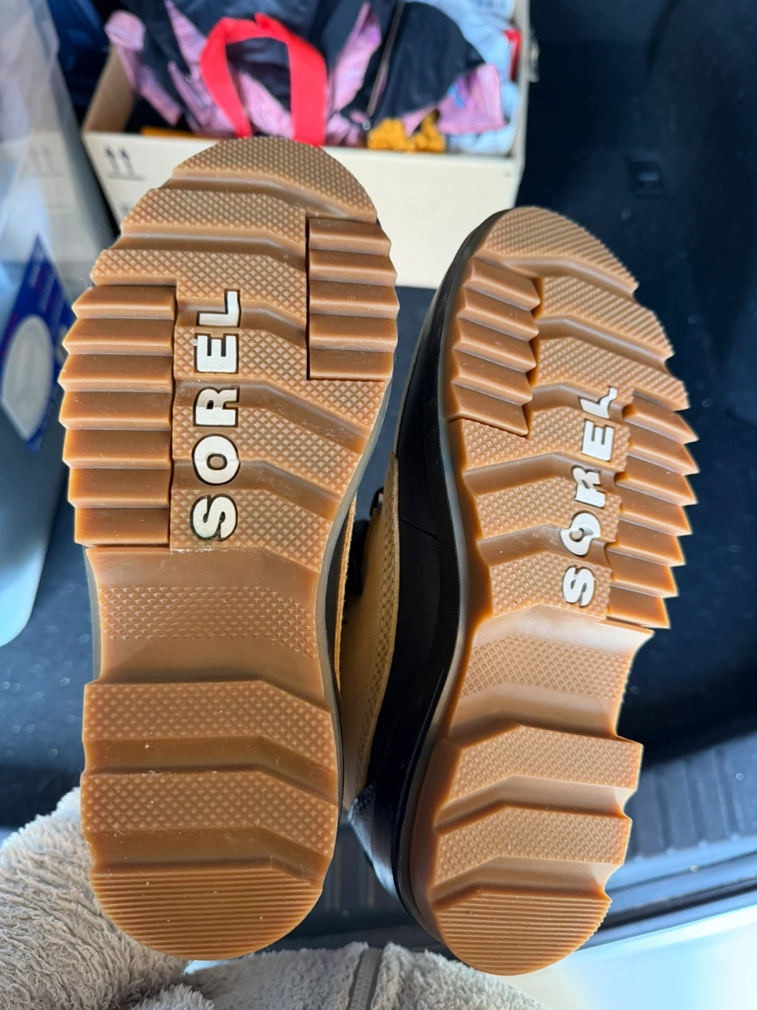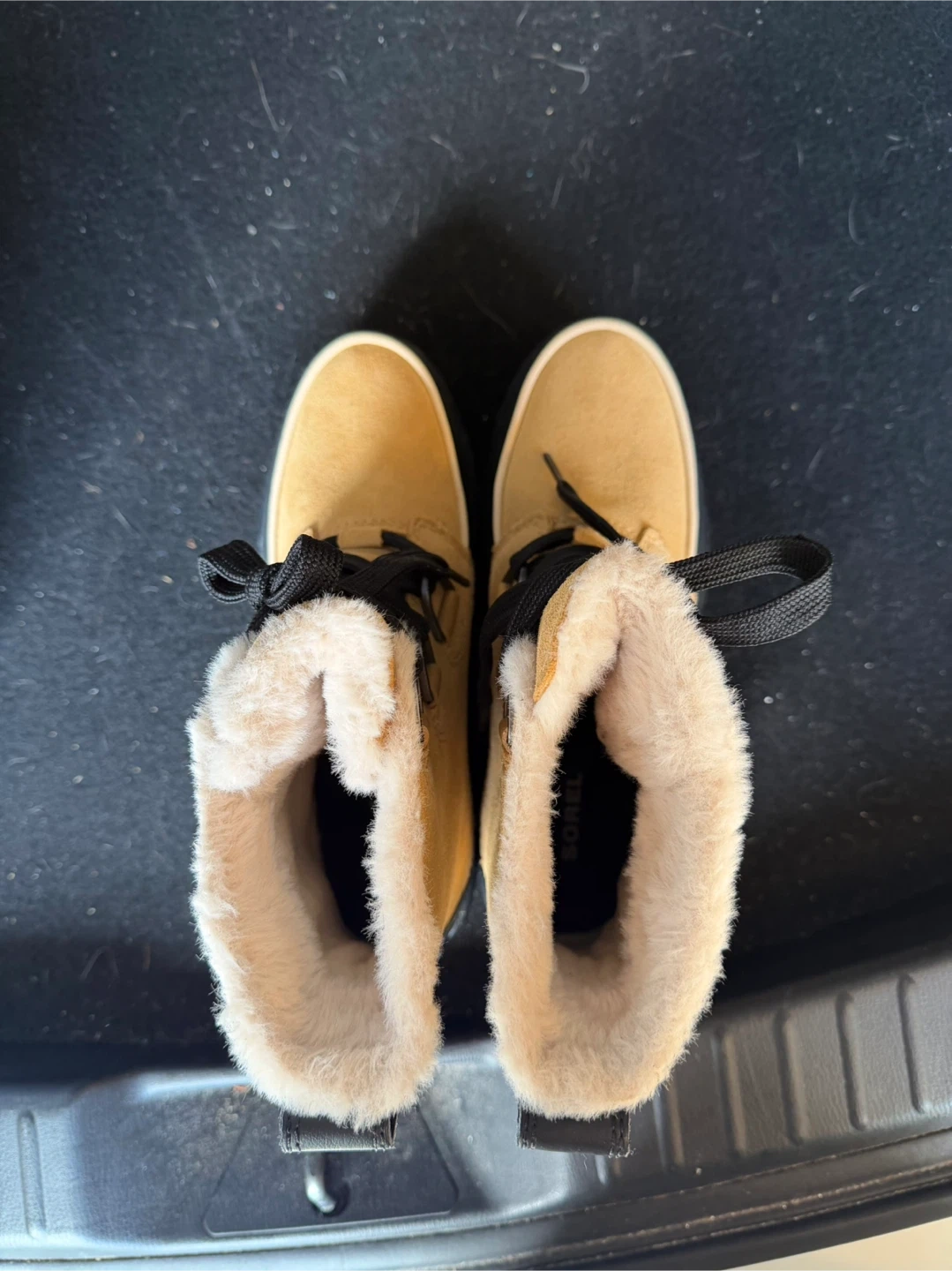 Mint condition 9/10. Sorel waterproof boots in women's size 7.5. These are a stylish and practical choice for keeping your feet warm and dry! The boots feature a tan suede upper with black laces and a black rubber sole.. Perfect for the Canadian winter!