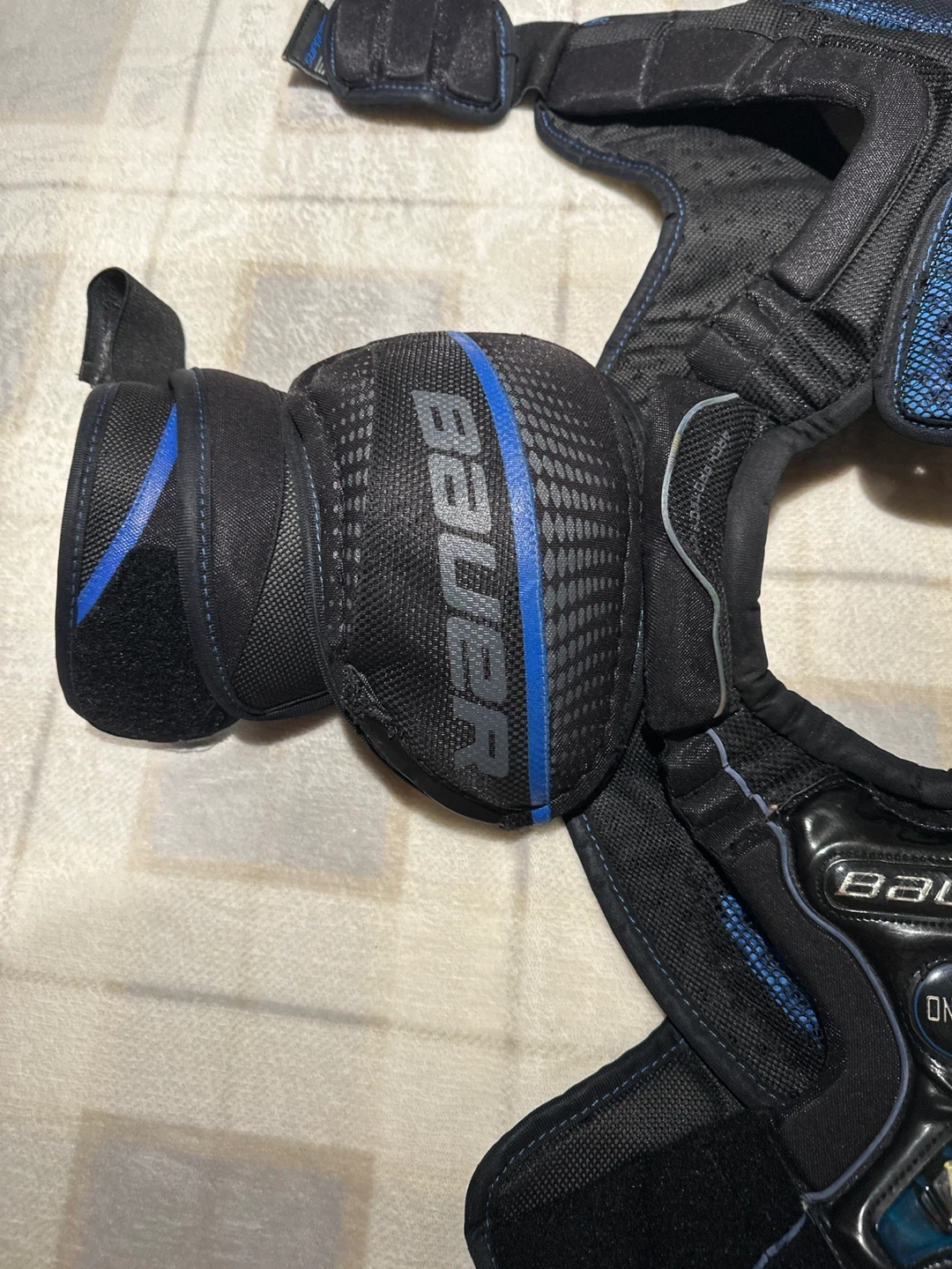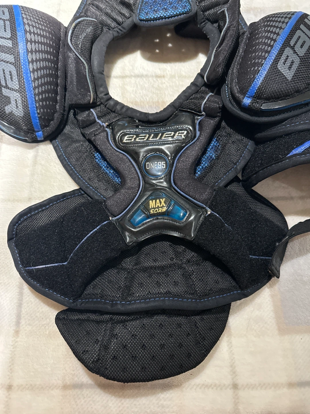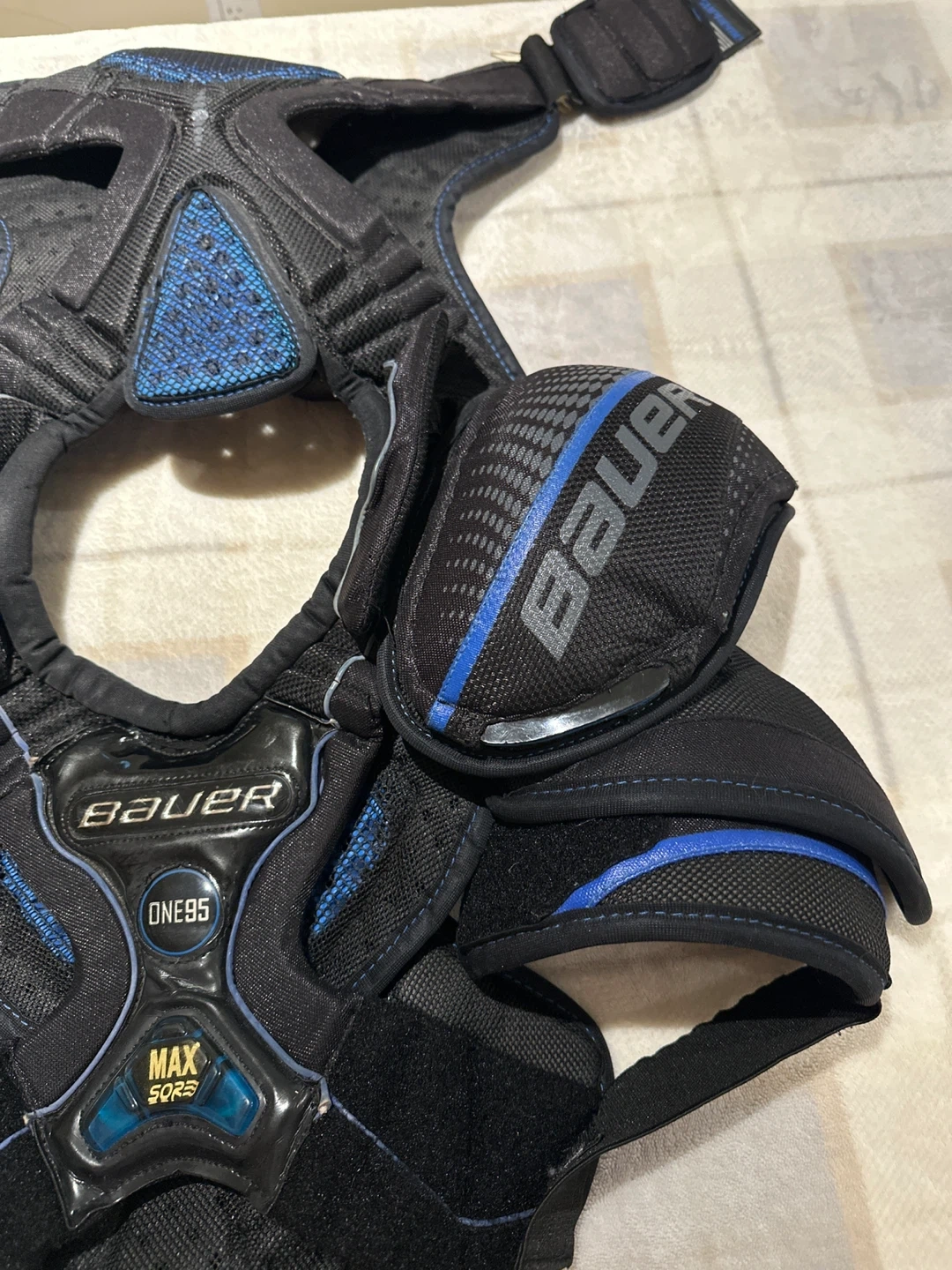 SR small size Selling a pair of Bauer ONE95 hockey shoulder pads. They feature Max-Sorb technology for excellent protection. Great for hockey players looking for reliable gear!