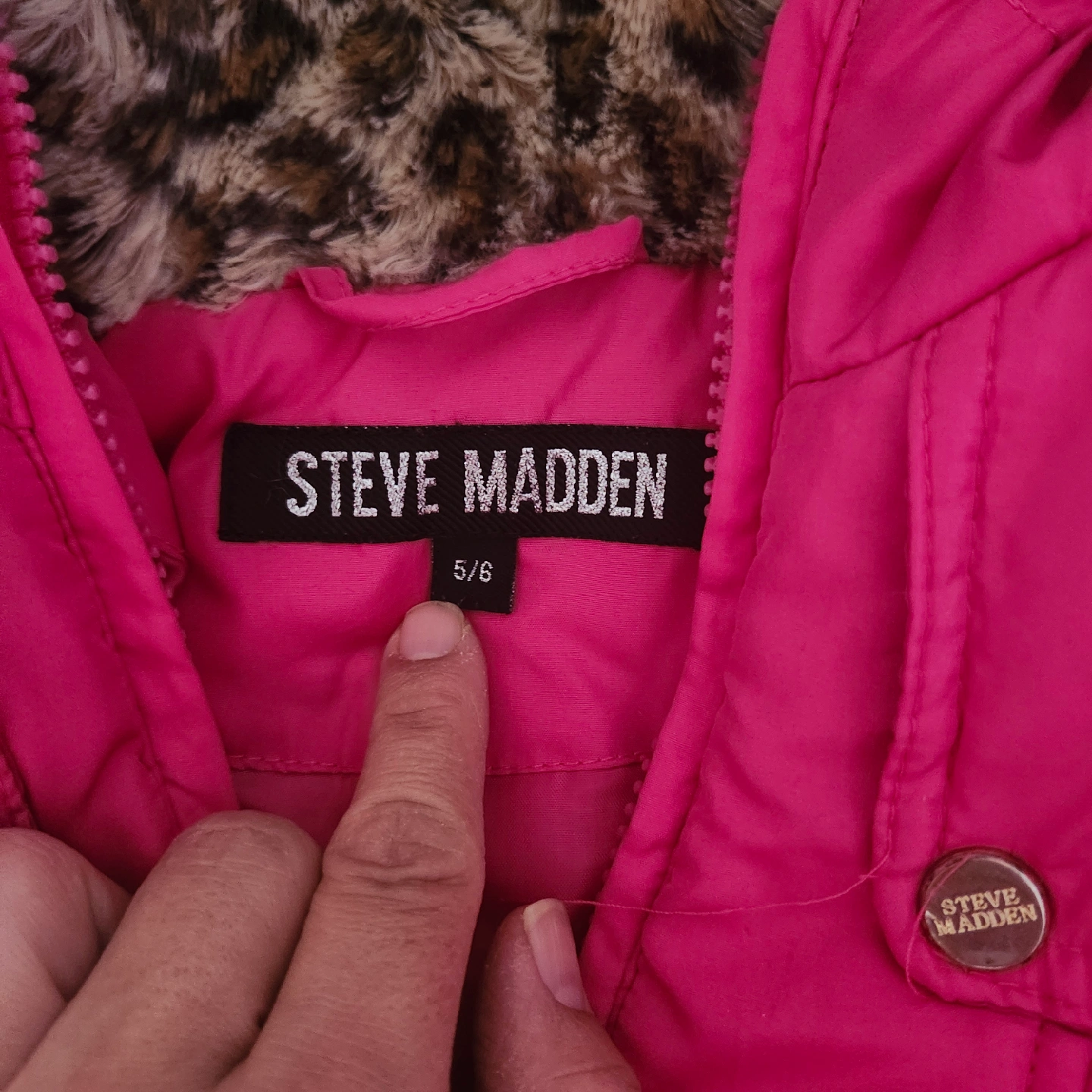 34Selling a Steve Madden kids puffer jacket in size 5/6. It's a lovely pink colour and features a faux fur trimmed hood. Perfect for keeping your little one warm and stylish!
