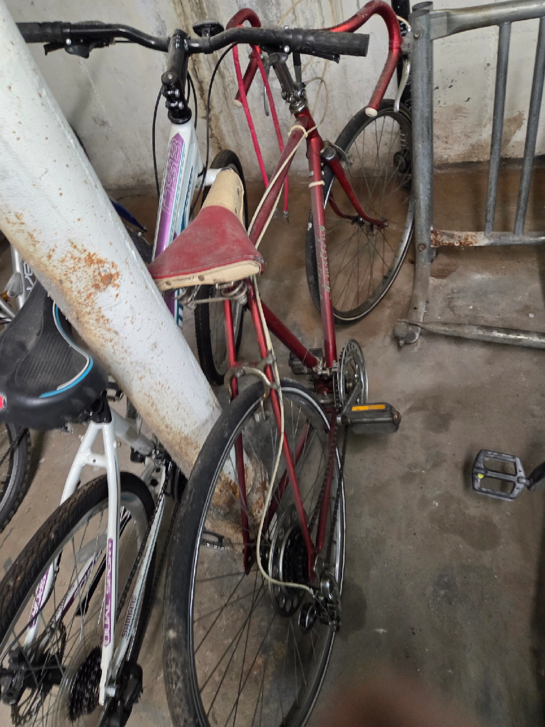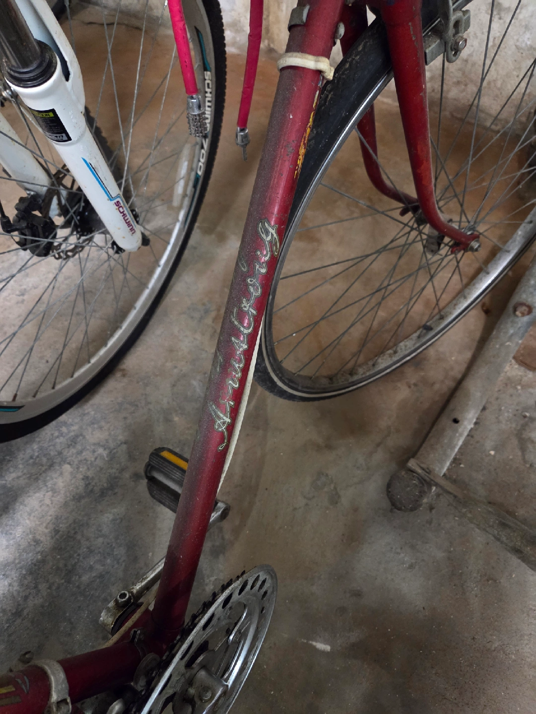 15Selling a vintage Ashford bicycle in red. It has a classic design and would be great for someone looking for a retro ride. Shows signs of wear consistent with its age, but still functional. Perfect for a restoration project or a unique urban commuter!