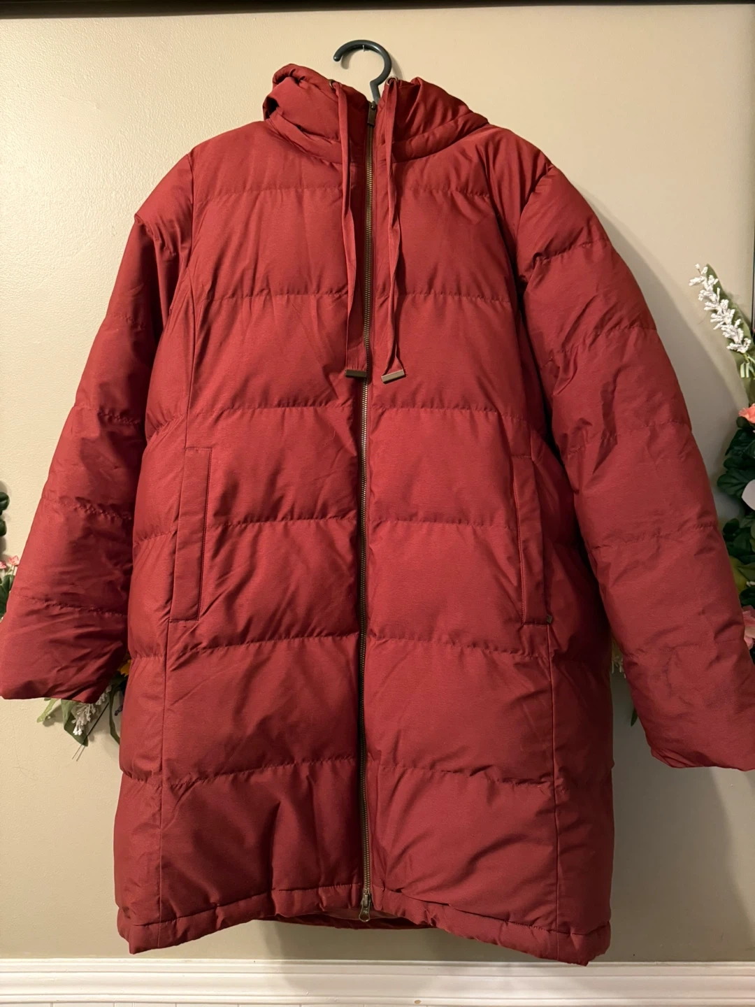 Cozy Denver Hayes puffer coat in a lovely red colour! It's an extra large size. Perfect for staying warm during the colder months… warmest winter jacket I’ve ever had