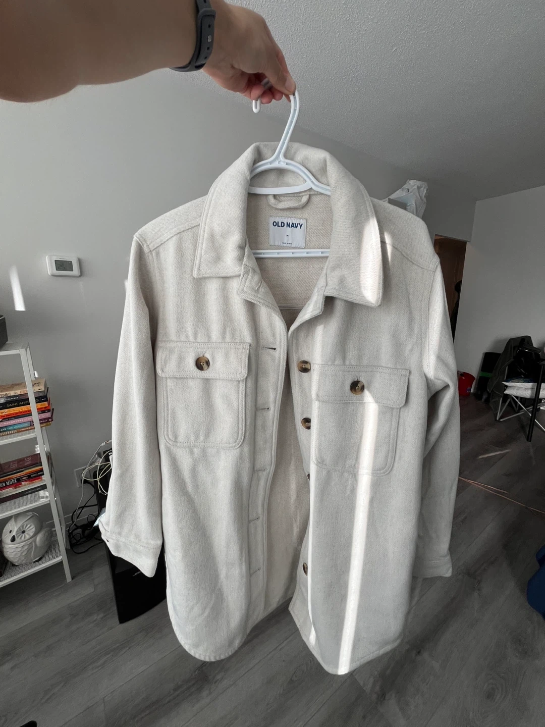 Selling an Old Navy shacket in a lovely beige colour. It's a size medium and in great condition. Perfect for layering on those cooler days, I don’t reach for this