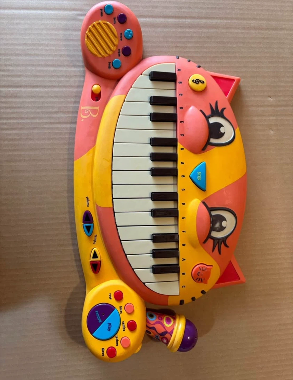 5Check out this adorable B. Meowsic Keyboard! It's purr-fect for little ones who love music and cats. Features include piano, organ, banjo, and bell sounds, plus tempo and volume controls.