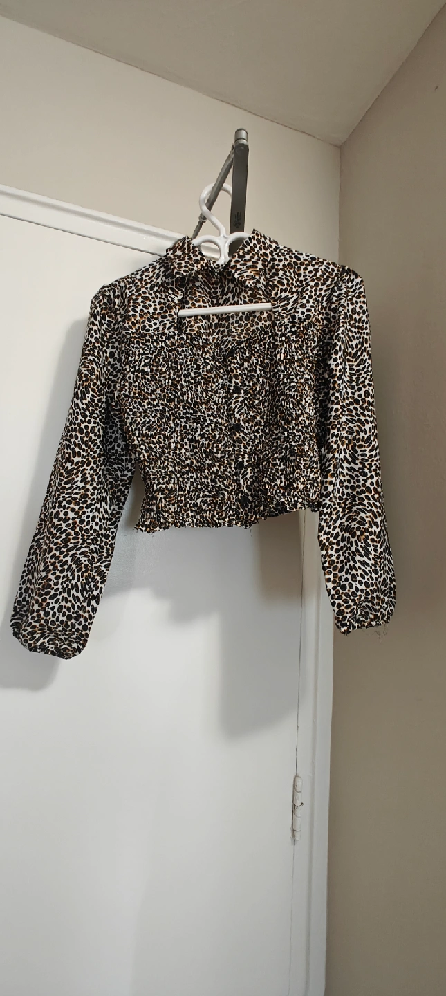215Here's a cute leopard print long sleeve crop top! It's in great condition and ready for a new home. The material is lightweight and comfortable,it has elastic waist. perfect for pairing with high-waisted jeans or a skirt for a stylish look