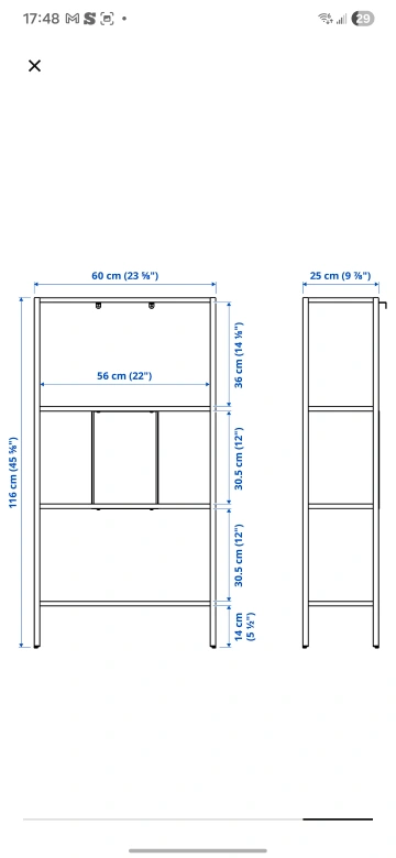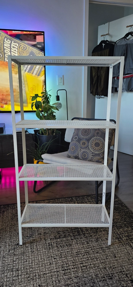 Selling a white IKEA BAGGEBO shelf unit. It's in great shape and ready to add some storage to your space. The dimensions are approximately 60 cm (23 5/8") wide, 25 cm (9 7/8") deep, and 116 cm (45 5/8") high. Perfect for books, plants, or decor!