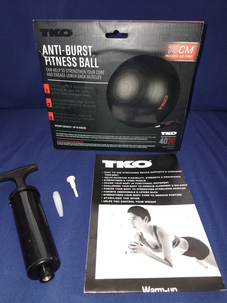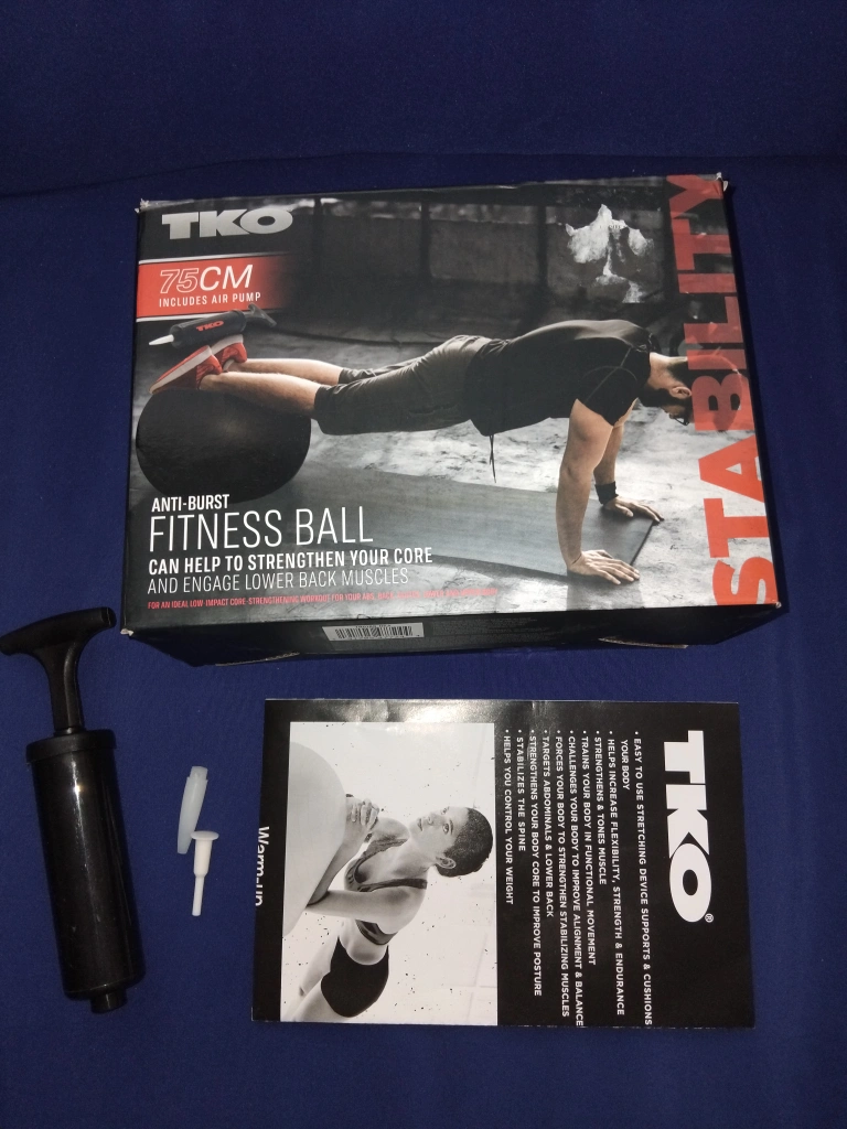 33475cm anti-burst fitness ball. Great for core strengthening and lower back muscle engagement. Includes air pump. Low-impact workouts. Used for pregnancy work out in my last month only. Pick up near Finch Subway Cash preferred Thank you