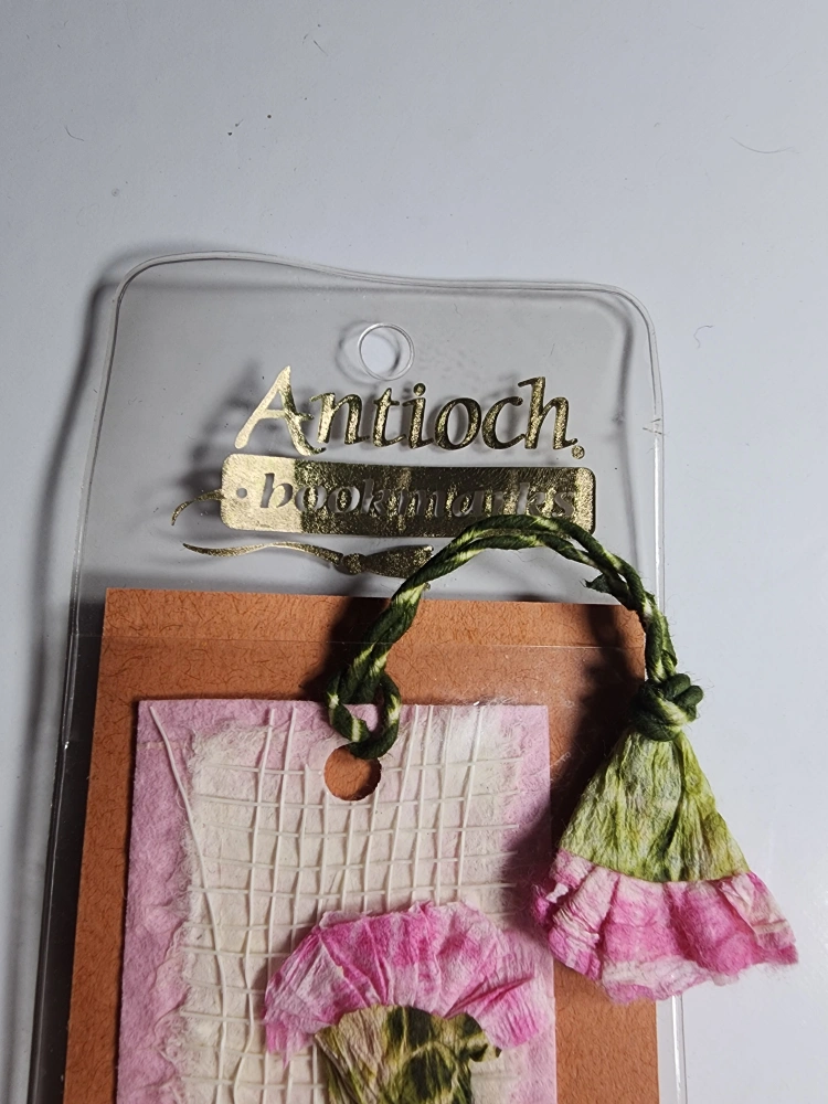 129Check out this brand new Antioch bookmark! It's a beautiful handmade paper bookmark still in its original packaging. The design number is CBM-F20161. It features lovely floral accents, perfect for any book lover