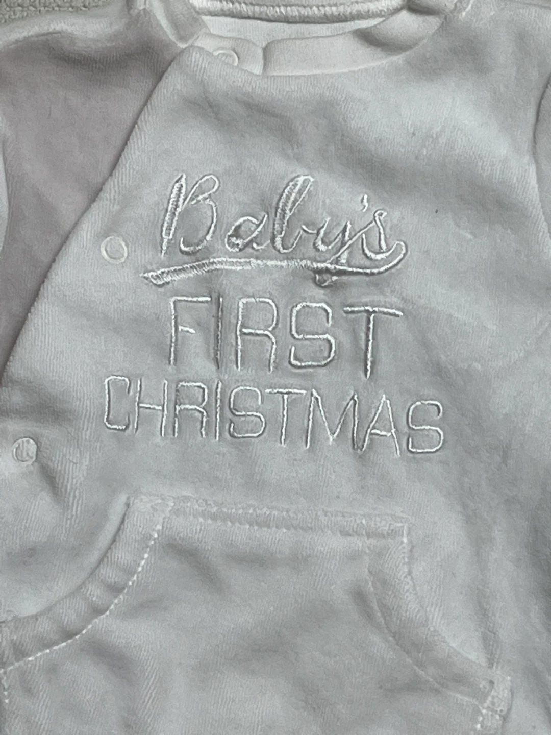 31Aww, celebrate your little one's first Christmas with this adorable Joe Fresh onesie! It's a soft, white onesie with "Baby's First Christmas" embroidered on the front. Perfect for babies aged 6-12 months (17-22lb, 8-10kg). Pick up at Brow of the Hill near 10th and Royal, New Westminster. Check out my other listings!