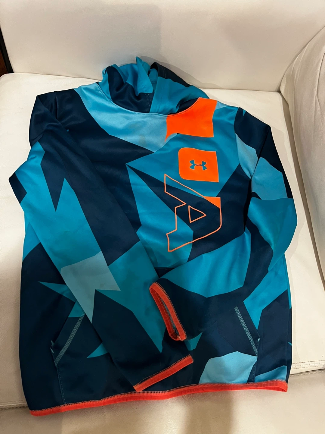 10Under Armour hoodie in excellent condition! This is a youth extra large (YXL) size, it might fit a boy who usually wears Youth Large hoodie. Excellent condition